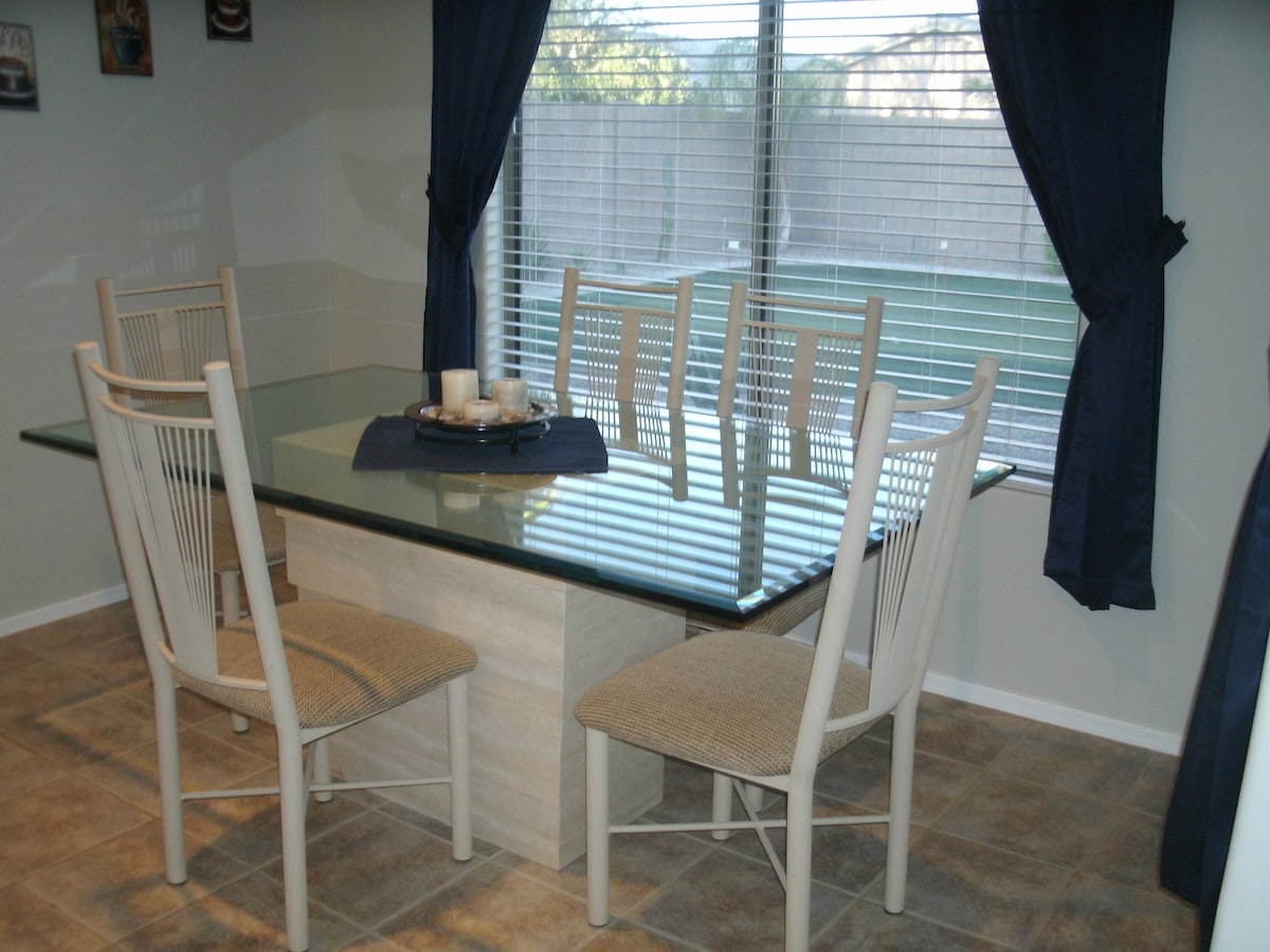 For the months of February through April, one of us will be in home also. Well-appointed bungalow in desirable location of Johnson Ranch. Home is located in a quite cul-de-sac and in close proximity to golf course, pools, and shopping. Our home is well stocked with everything you need to enjoy your stay. There is wifi and satellite tv for you to enjoy. There is a putting green in the back yard for guests to enjoy as well as a barbecue. The backyard has fruit trees that guests can pick.