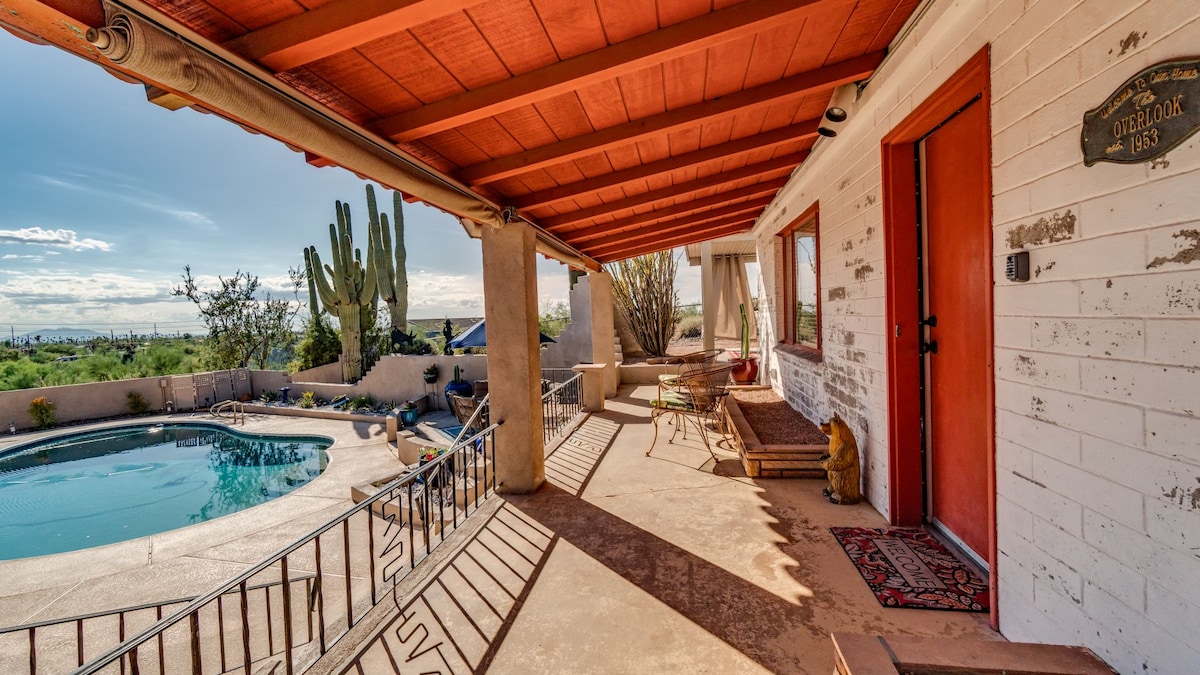 Charming Historical guest house situated on a mountainside with panoramic views overlooking the pool and city lights! 1.6-acre property near the Superstition Mountains. Pool, Hot tub, Fire pit, Gas Grill, Mountain bikes or Beach cruisers. Charming 500 sq. ft. Studio Cottage with all new flooring, full size murphy bed, full bath, full kitchen and 2 covered patios. Cottage had a complete renovation, but we have left some of the original character of the home. Great location for hiking and biking.