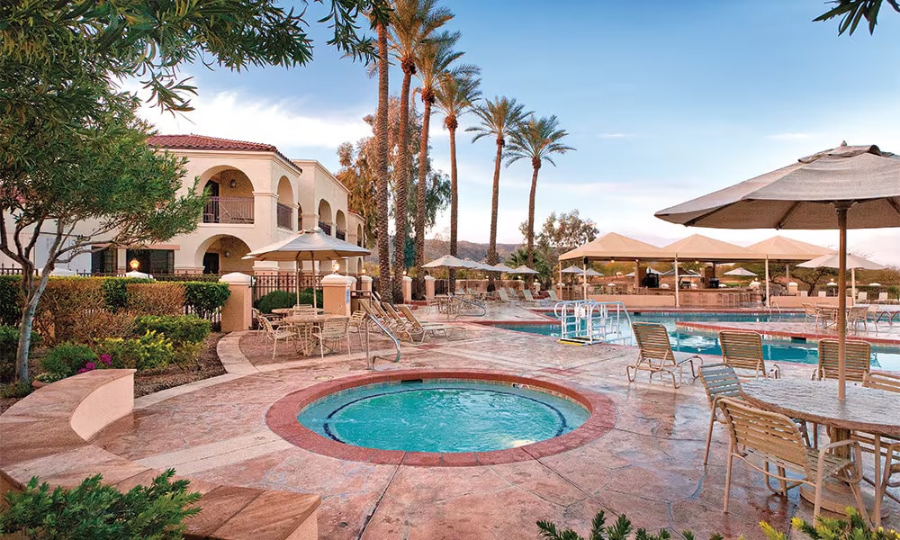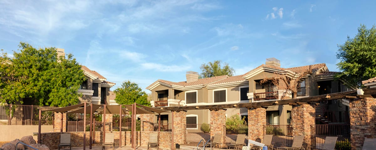 Relax in style at Legacy Golf Resort in Phoenix. This spacious 1-bedroom suite features a king bed, queen sleeper sofa, full kitchen, and private balcony or patio. Enjoy the 18-hole championship golf course, heated pool, hot tub, tennis courts, and fitness center. Located near downtown Phoenix and just minutes from Sky Harbor Airport, this resort offers comfort, convenience, and endless recreation for your desert getaway.
