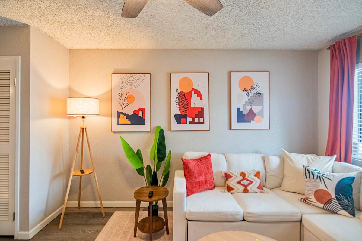 Perfectly positioned just half a mile east of Scottsdale Road off East Weber Drive in North Tempe/South Scottsdale, this 1,700+ sq. foot property offers unparalleled convenience. Fully upgraded with 3 bedrooms, 3.5 baths, a 2-car attached garage, & a fully equipped Game Room featuring Shuffle Board, 2 Standup Arcades, a 60-inch flat-screen TV, and a 3-in-1 Foosball Table. Tastefully furnished with an eclectic blend of Mid-Century and Boho styles, this property sets the tone for ideal ambiance.