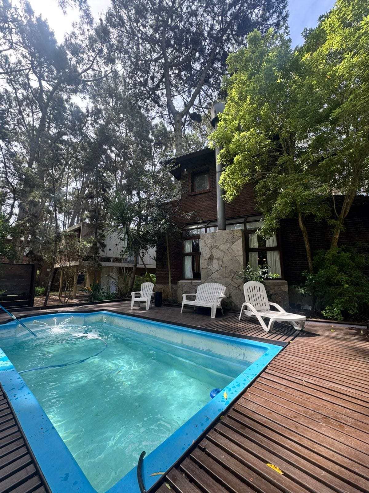 Disfrutá de la sencillez de este alojamiento tranquilo y céntrico. En pleno bosque de Mar de las Pampas, a cinco cuadras del mar y una del centro comercial. Dentro de un amplio predio de 7 cabañas. Piscina, parrilla individual, jardines. Cabaña en dos plantas. Planta Baja living, cocina comedor y baño. Planta alta dormitorio.