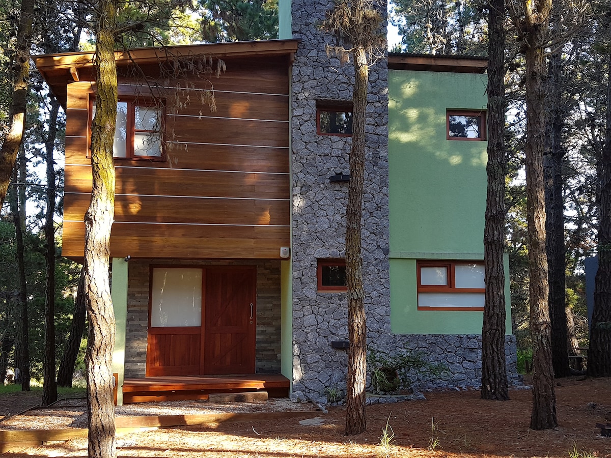 A 2 minutos del mar. 230 mt2. 4 dormis, 2 en suite. Premium. Planta alta con exclusivo dormitorio principal en suite, con terrazas y baño con bañera. Abajo 3 cuartos. Importante living-comedor. Parrilla. Terrazas. Solarium. Hecha con materiales puros y alta calidad. Entre pinares. Muy Cómoda y aroma a maderas. Ideal para disfrutar en verano y en invierno. Una cocina con isla. Lavadero. Ducha exterior Y cada detalle elegido amorosamente. Matrimonios consultar precio.