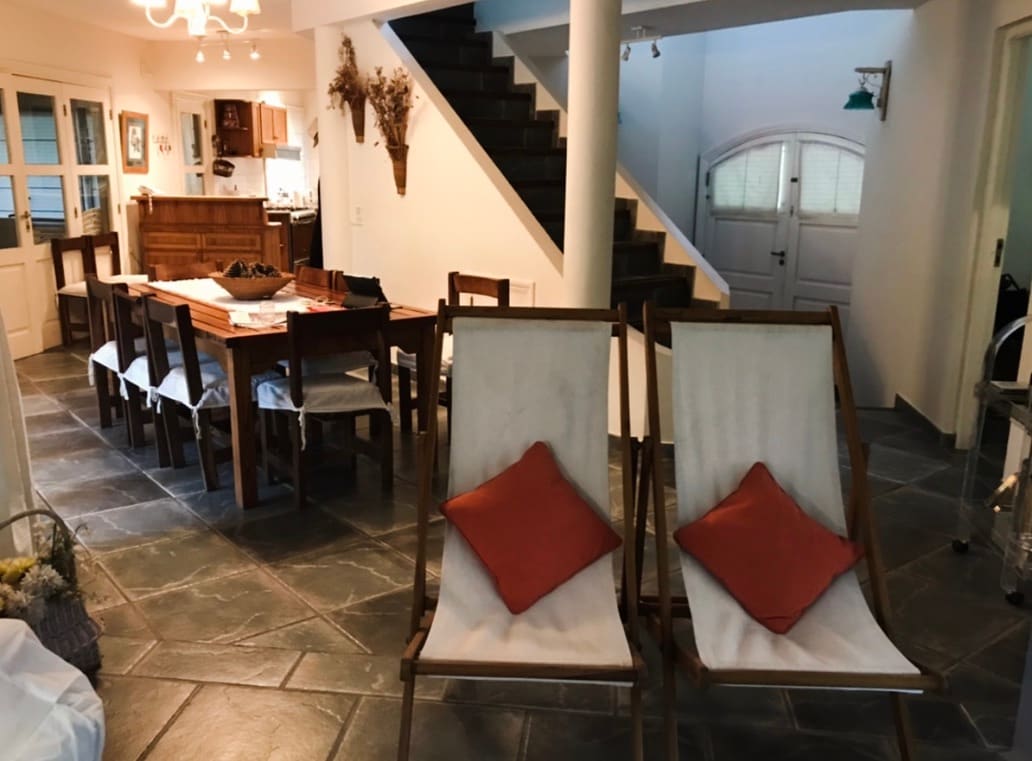 Relajate con toda la familia en este tranquilo y luminoso departamento completo a 5 cuadras del mar, 7 cuadras de centro de Mar de las Pampas y del centro de Mar Azul. Dos habitaciones, una con cama matrimonial y otra con dos camas. En sala de estar, sofá con cama carro con posibilidad de armar dos camas adicionales. Se alquila solo por semana, enero y febrero, check in día sábado. Incluye ropa de cama y toallas (no playeras) y juego de playa con 4 reposeras y mesa carro para transportarlo.