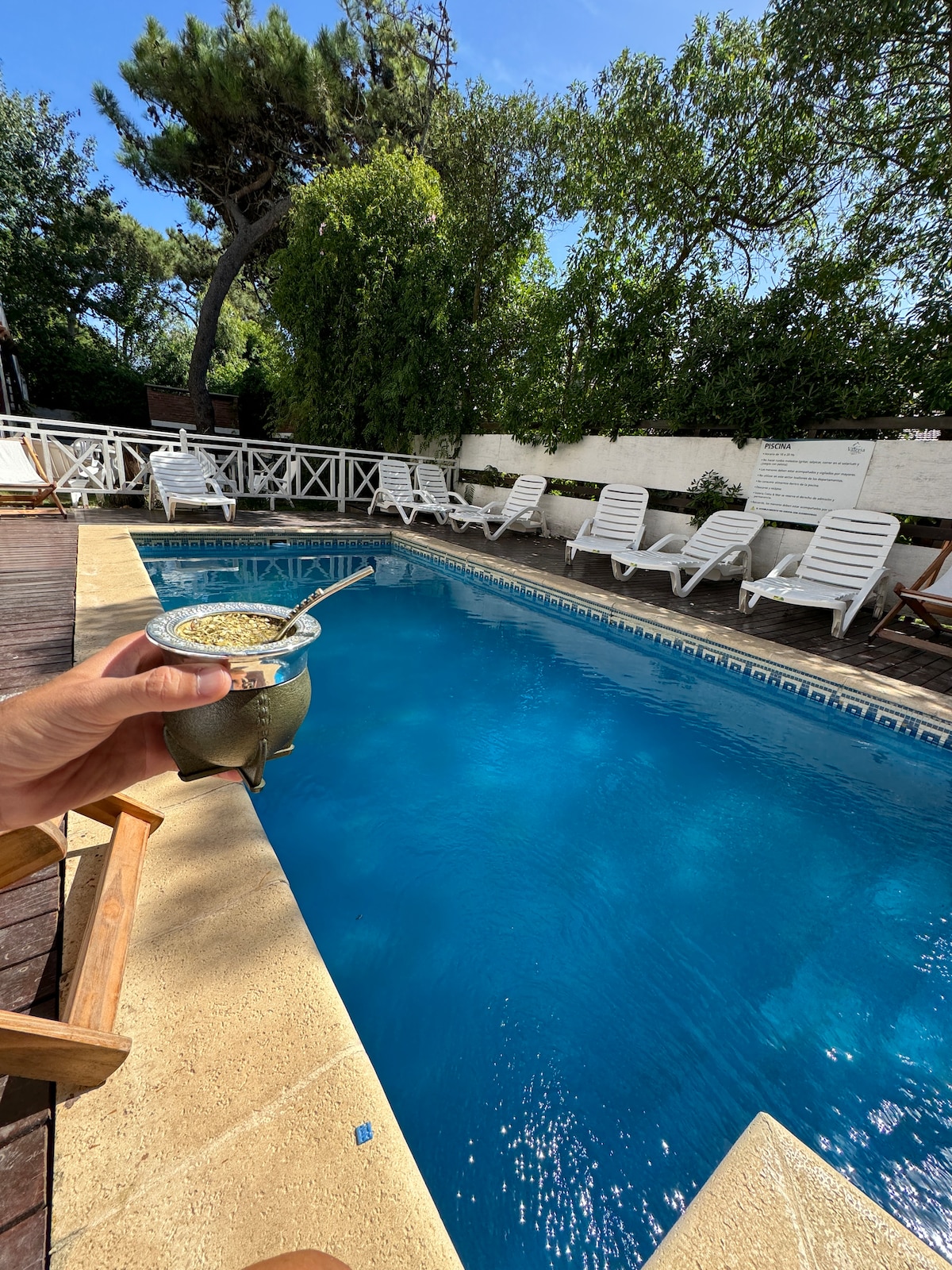 Departamentos luminosos con vistas a la piscina climatizada y al jardín. Ubicado a solo 10 cuadras del centro de Valeria Del Mar y su característica principal es la tranquilidad y la cercanía a la playa. Ambiente familiar. Desayuno incluido y ropa blanca. - 100 metros del Mar - Wi Fi includio - Piscina climatizada - Reposeras y Solarium - Parrillas - Casa del Arbol - Desayuno - Ropa blanca (sabanas y Toallas)