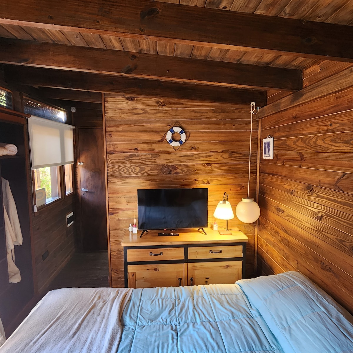 Escápate a una acogedora cabaña en el bosque de Pinamar Norte, perfecta para una pareja. Disfruta de la privacidad y tranquilidad rodeado de naturaleza, a solo 700 metros del mar. Equipamos la cabaña con todo lo necesario para tu comodidad: parrilla, WiFi de alta velocidad, Smart TV y espacios diseñados para el relax. ¡El destino ideal para un descanso inolvidable!