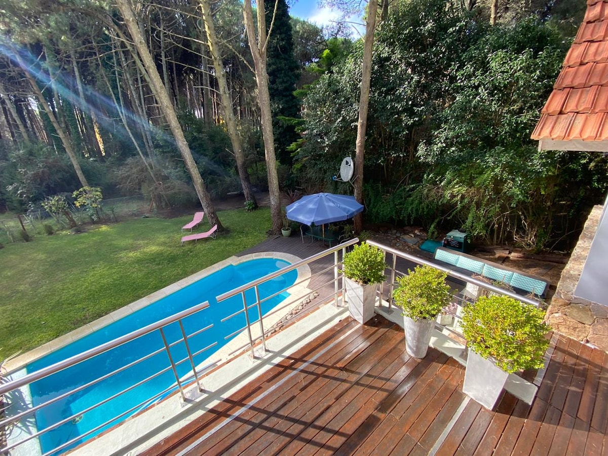 Ubicada en el corazón del bosque, esta moderna y elegante casa de una planta ofrece un refugio único, rodeado de árboles y la tranquilidad de la naturaleza. Con amplios espacios diseñados para disfrutar del entorno, podrás relajarte mientras contemplas increíbles atardeceres y escuchas el sonido de la fauna local. Pensada para disfrutar al máximo del aire libre, con una extensa galería semicubierta, piscina, parrilla y fogonero, donde podrás compartir momentos inolvidables con familia o amigos.