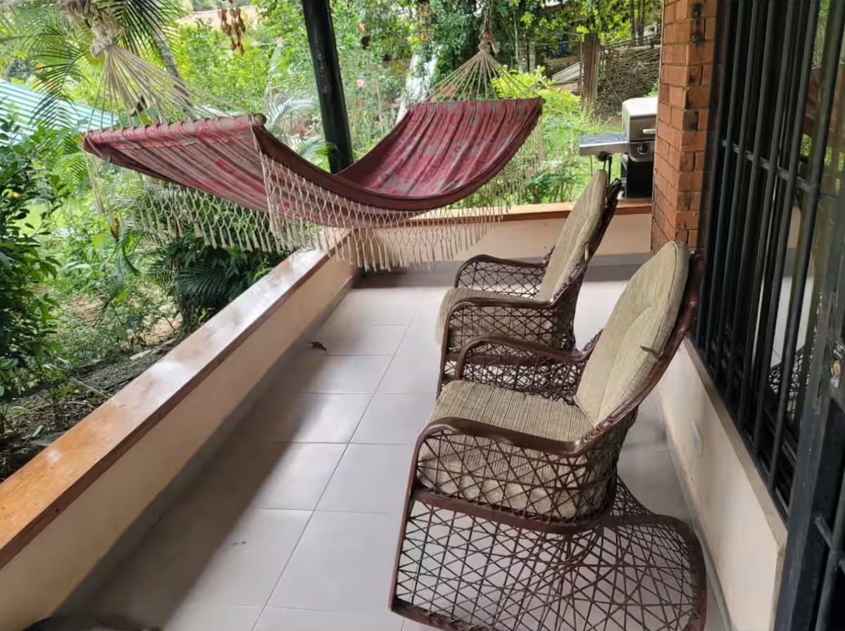 Get back in touch with nature surrounded by the lush tropical forest of Jarabacoa. This modern mountain home features soaring ceilings, natural materials throughout, contrasting textures, and access to a shared outdoor pool. The property is located a few minutes from the town of Jarabacoa and tourist attractions such as rafting, cycling trails, cliff diving, paragliding, ziplining, and other excursions. The vacation complex is conveniently located across from the most popular steakhouse in the area, and has a community pool, playground, and tennis and basketball courts. Rental of the home is for the exclusive use of guests. In case of emergency or any unforeseen issues guests will be assisted by the property manager. If requested and available, housekeeping services can be provided including meal preparation (breakfast, lunch, dinner) for an additional fee. The property is located on a holiday complex located in the area of Buena Vista, Jarabacoa. Para contacto por whattsap +1 202-476-9402. La locación del complejo vacacional es estratégica y con buen acceso, incluso hay lineas de transporte público que cruzan justo al frente de la entrada del complejo. La casa cuenta con una marquesina con capacidad para cuatro (4) vehículos. También hay un área de parqueo para visitantes con capacidad para diez (10) vehículos, a unos de 50 metros de la casa. The home has a generator in case of electrical outages.