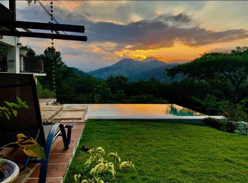 (Absolute privacy) Espectacular one bedroom Villa located 14 min from the center of jarabacoa easy access on any type of car. Uniquely and personalized built to help couples scape from the wourld to a private and peaceful Stay. Private and heated pool right at the bedroom side, 360° rotating TV, king size bed, Elegant kitchen and amazing bathroom. Free wifi power by starlink.