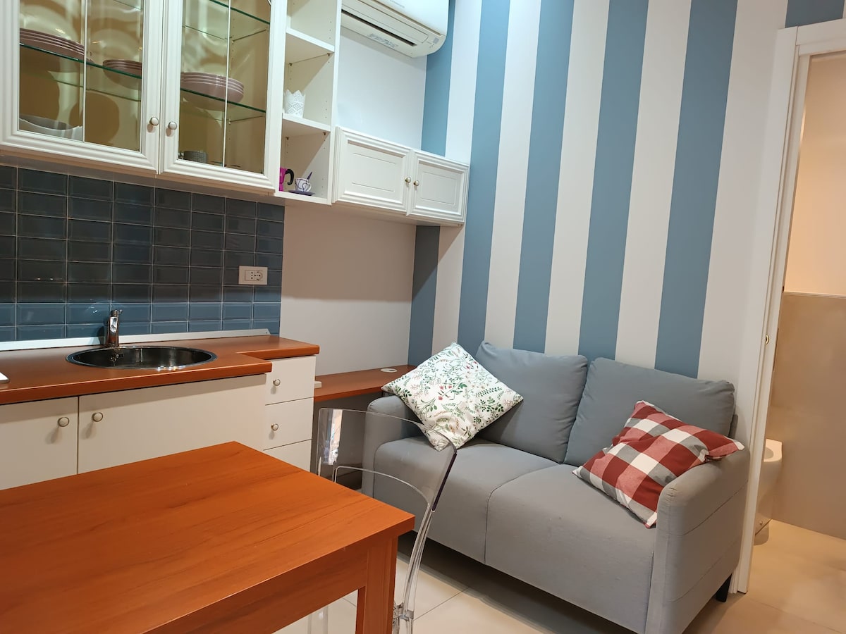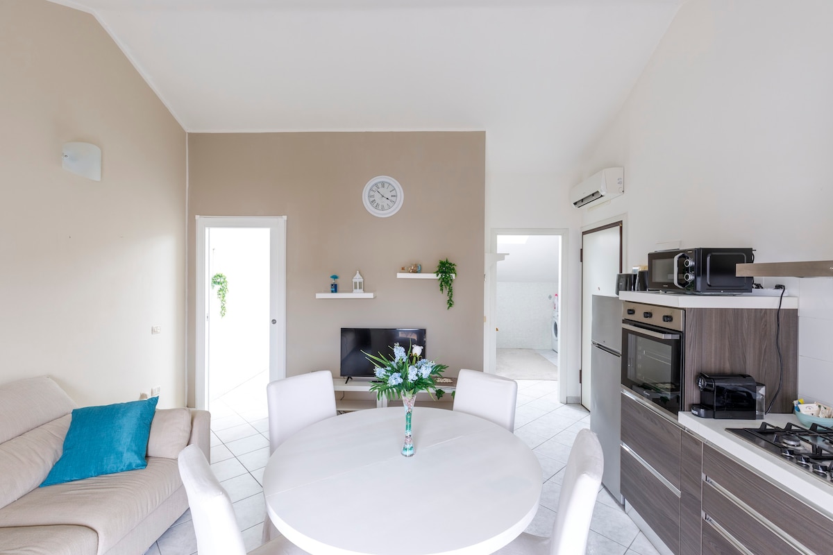 Questo accogliente appartamento monolocale è un piccolo gioiello di spazio ben sfruttato. L'ingresso è situato in una corte interna a pian terreno. L'appartamento è arredato in modo funzionale, con una cucina a vista, un piccolo tavolo da pranzo, un divano, un letto e un bagno compatto con doccia. Nonostante le dimensioni ridotte, l'uso intelligente dello spazio e la posizione centrale lo rendono ideale per chi lavora o anche per turisti in cerca di semplicità a due passi dal mare.