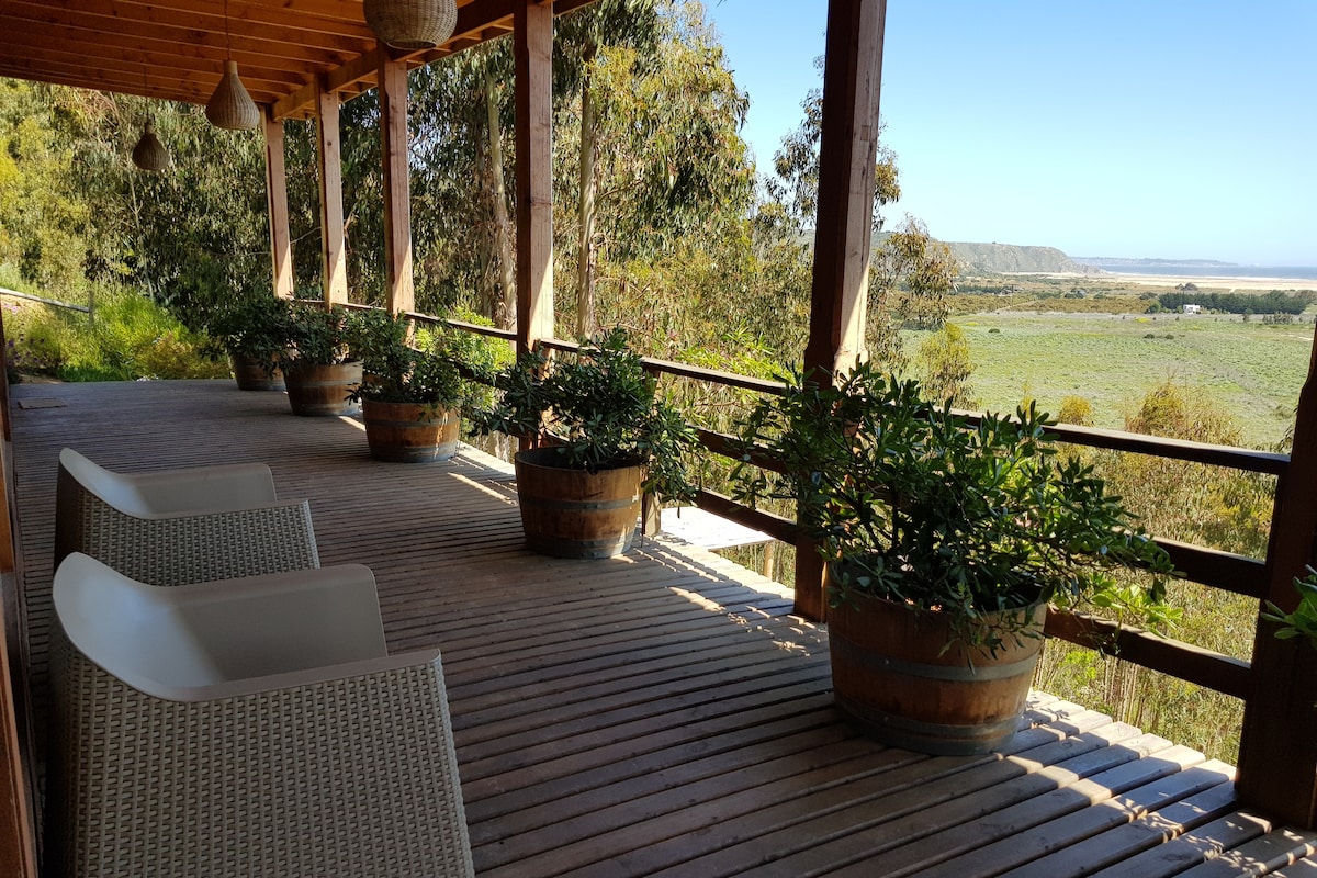Located in La Boca, this eco-friendly home offers breathtaking views of Tunquén beach, the valley and the protected wetlands, surrounded by nature that invites peace, rest and wildlife observation. Spacious and comfortable, the house accommodates up to 7–8 guests and runs on clean, renewable energy. Just 90 minutes from Santiago and 45 minutes from Valparaíso, it is an ideal escape for those seeking tranquility, nature and stunning ocean views.