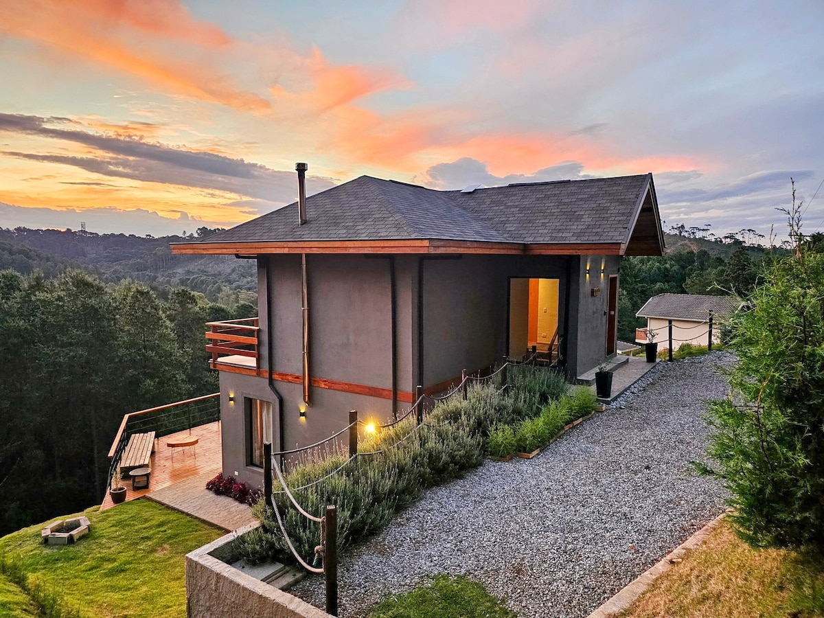 Relaxe neste lugar único e tranquilo. O Recanto Chamonix está localizado em Pindamonhangaba com uma vista 360° para as montanhas de Campos do Jordão e arredores. O Recanto possui uma maravilhosa e luxuosa casa construída no alto de uma montanha com móveis e decoração moderna em meio a natureza. Desfrute do há de melhor no Recanto Chamonix!