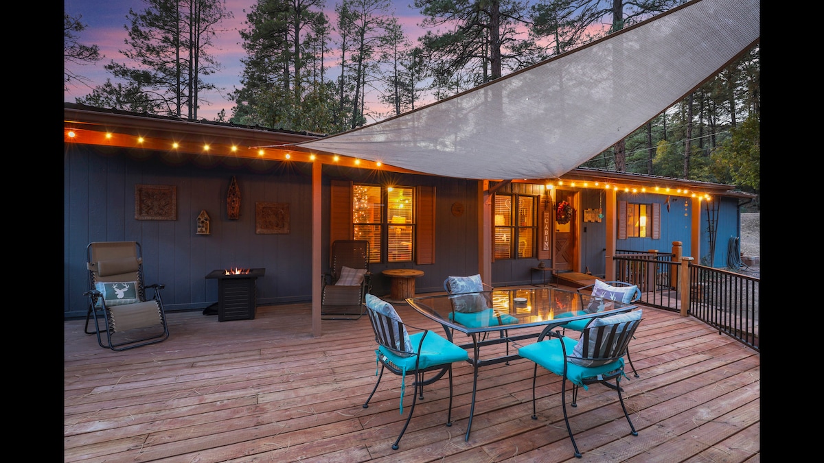 Escape city life in this cozy mountain cabin in the Tonto National Forest. Its wrap-around double deck overlooking the Mogollon Rim is great for watching sunrises, sunsets, wildlife, and stargazing. There are 2 bedrooms with queen beds (one has an ensuite bathroom), and there's a murphy bed in the library. The library has a large workspace with two desks. The cabin is the perfect base for relaxing, hiking, working remotely, visiting Fossil Creek, Tonto Natural Bridge and so much more!l