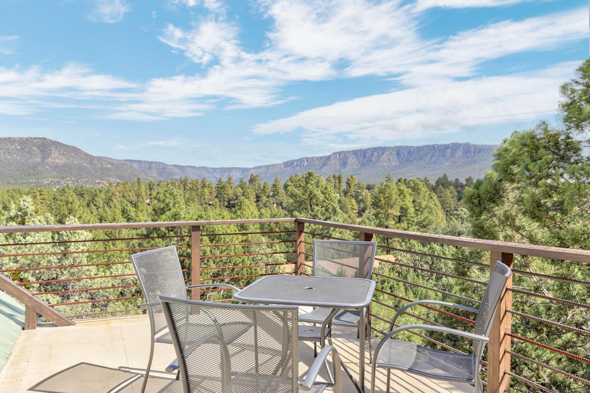 Rim View: Where the only reason to leave is so you can come back again. Experience breathtaking views from every window and the wrap-around deck while enjoying the comforts of home. 3BR, 2BA and plenty of outdoor space make Rim View perfect for up to 6 people. Make dinner in the gourmet kitchen or grill on the patio while watching the sun set over the Rim. You can drive down the mountain, make one left turn to all Pine has to offer. Pine is an easy drive and less than 2 hours from the Valley.