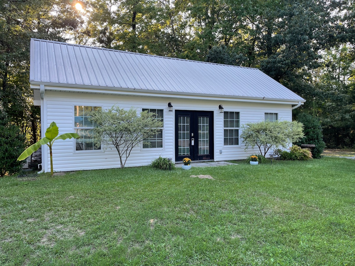 Great retreat!!!!! This tiny house is open and feels spacious and well equipped for a weekend or over nite stay. Located by a stocked pond excellent for fishing. Enjoy serene hiking areas excellent for peace and getting back to nature. Horses are nearby so enjoy watching them play. All the amenities you can imagine, full size refrigerator, oven and microwave and washer and dryer. A romantic picnic area with soft lights and plenty of privacy. Pet friendly! Come and be our guest!