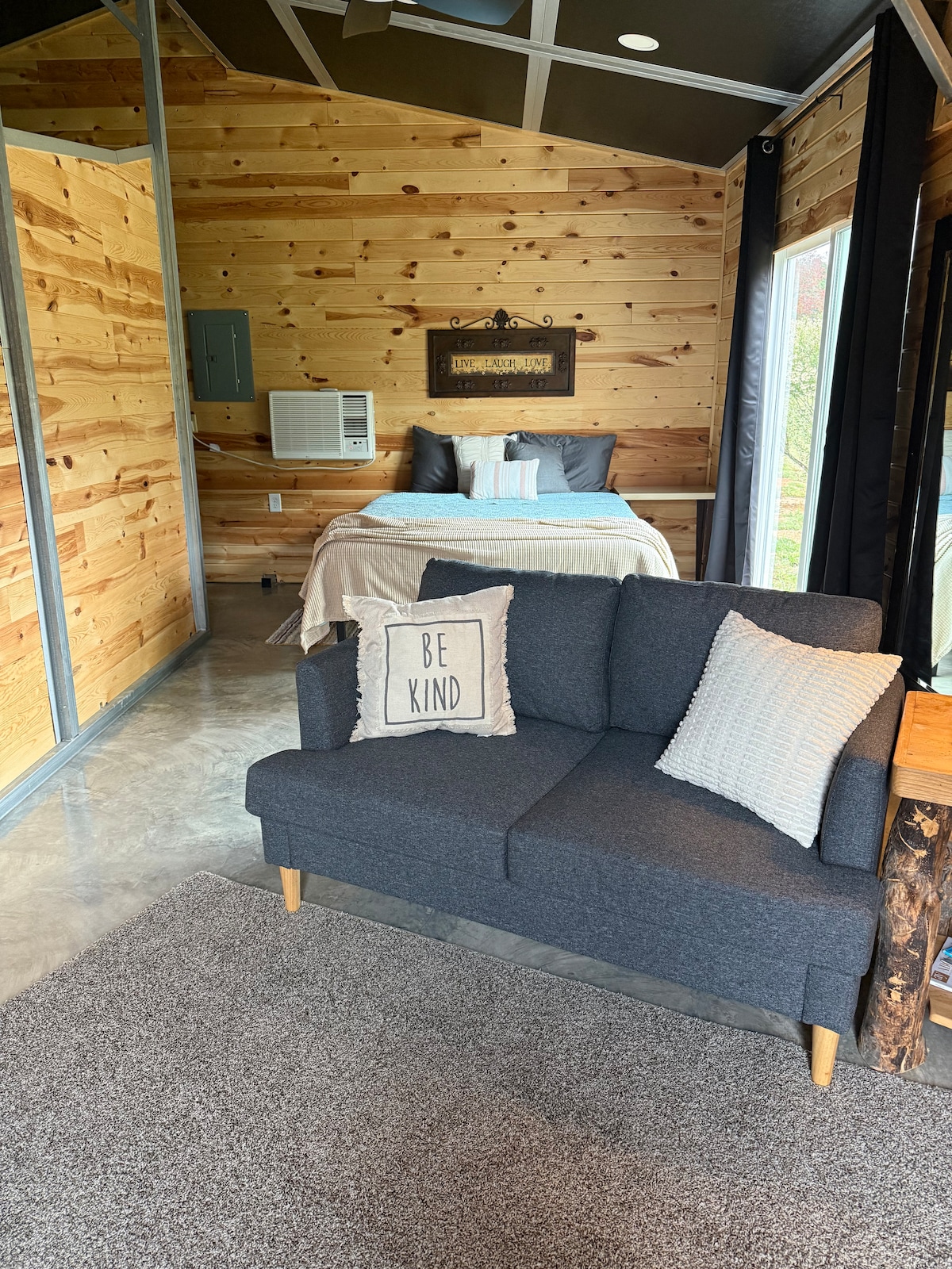 “Twisted Pines Luxury Escapes” is a Romantic treetop retreat with tranquil pond views and a glowing fountain,set on five private acres of pure privacy. Indulge in the deep soaking tub, enjoy heated towel rack, or unwind in the hot tub beneath a blanket of stars. Spend your days playing cornhole, ping pong, & paddling across the pond in a paddle boat provided , step into a full retro arcade tucked inside a classic Airstream camper.Nature,luxury, & endless fun combine for an unforgettable getaway