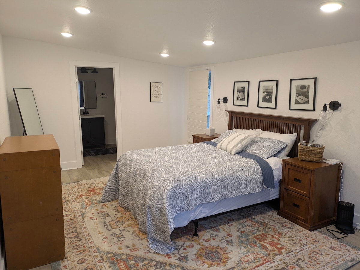 Jimmie’s House is a cozy three-bedroom oasis. Kick back and relax in this calm, stylish space. This newly renovated space was designed with you in mind. Comfortable and spacious in a family-friendly environment. Sleep 5 comfortably and one additional person on a cot that can hold someone under 150Lbs. Willing to set up a cot for an extra person at no extra charge. Free Coffee with the use of a functional kitchen with all pots and pans. Utensils are available. Use of washer and dryer.