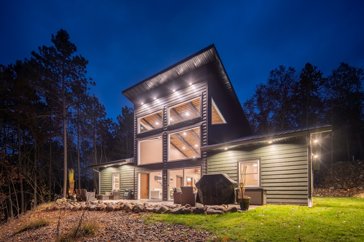 AIRBNB FEES INCLUDED! Escape to our brand-new, pet-friendly lakefront retreat in Danbury, WI—just 1.5 hours from the Twin Cities! 4bd / 2ba Sleeps 10 Pet-friendly🐾 Optional pontoon & SUP rental, free kayaks🚤 Firepit with unlimited firewood 🔥 Hiking/biking and offroad trails within 5 minutes UTV paradise cabin!! Fully equipped kitchen perfect for entertaining! Rainfall showers and jacuzzi tubs Cozy vibes, and endless memories await. Book your perfect getaway today! 🏡