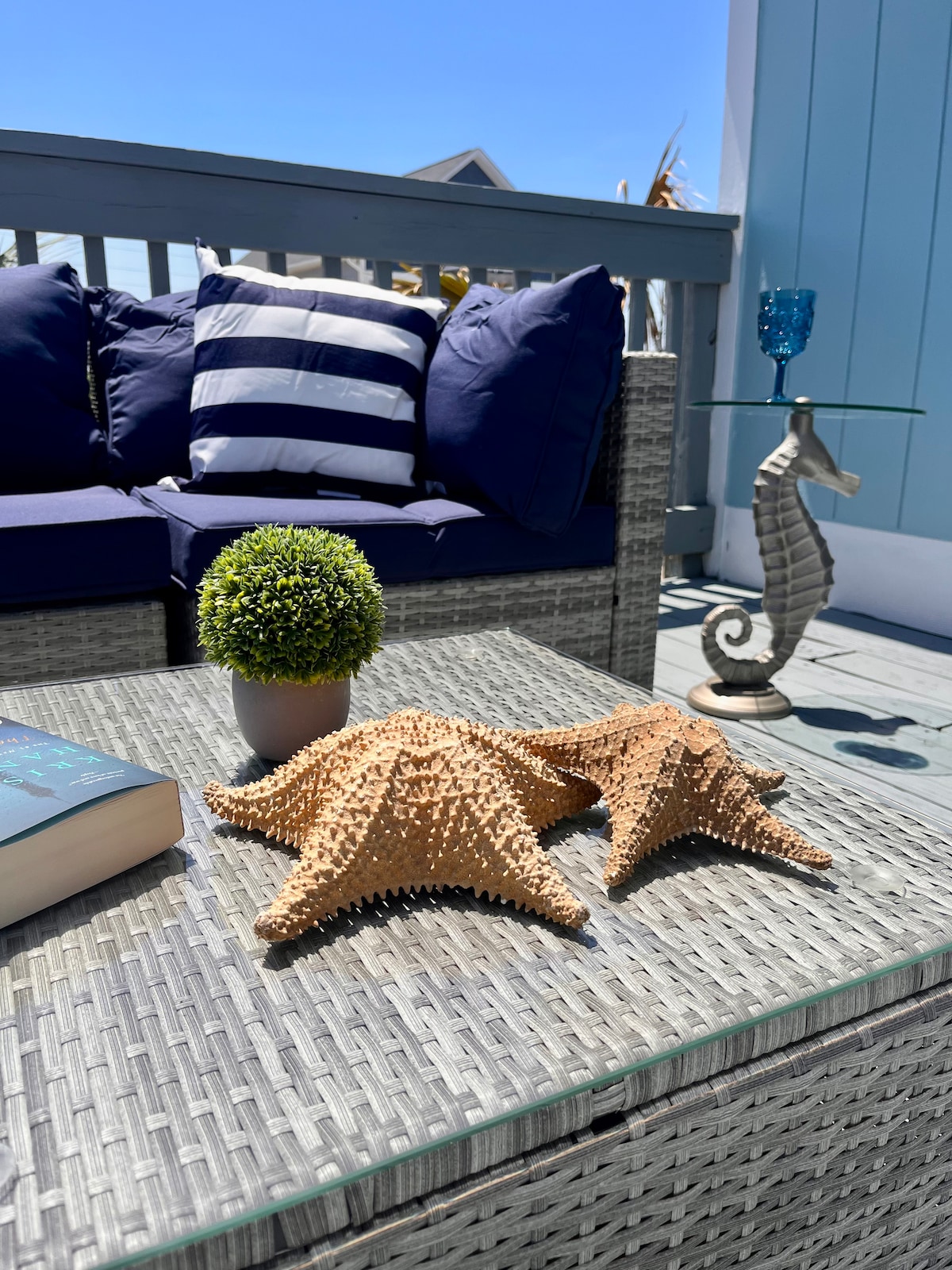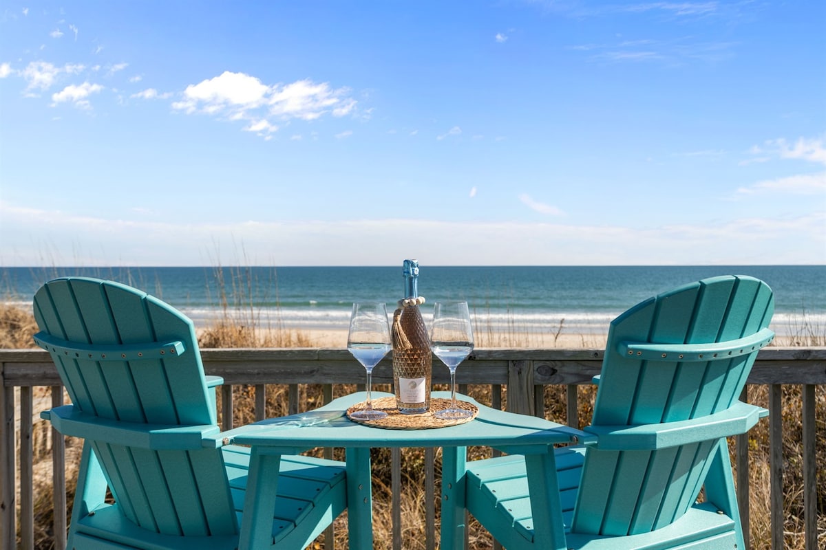 Linens and household supplies provided. Dogs OK. Welcome to The Ocean Breeze, a beautifully renovated oceanfront 3 bedroom, 3.5 bathroom townhouse with breathtaking, unobstructed Atlantic views. Fall asleep to the sound of waves and wake to stunning sunrises. Enjoy three private balconies with comfortable outdoor seating, perfect for relaxing with family and friends while taking in the ocean breeze. Keep an eye out—dolphins are often spotted just offshore, making every stay unforgettable.