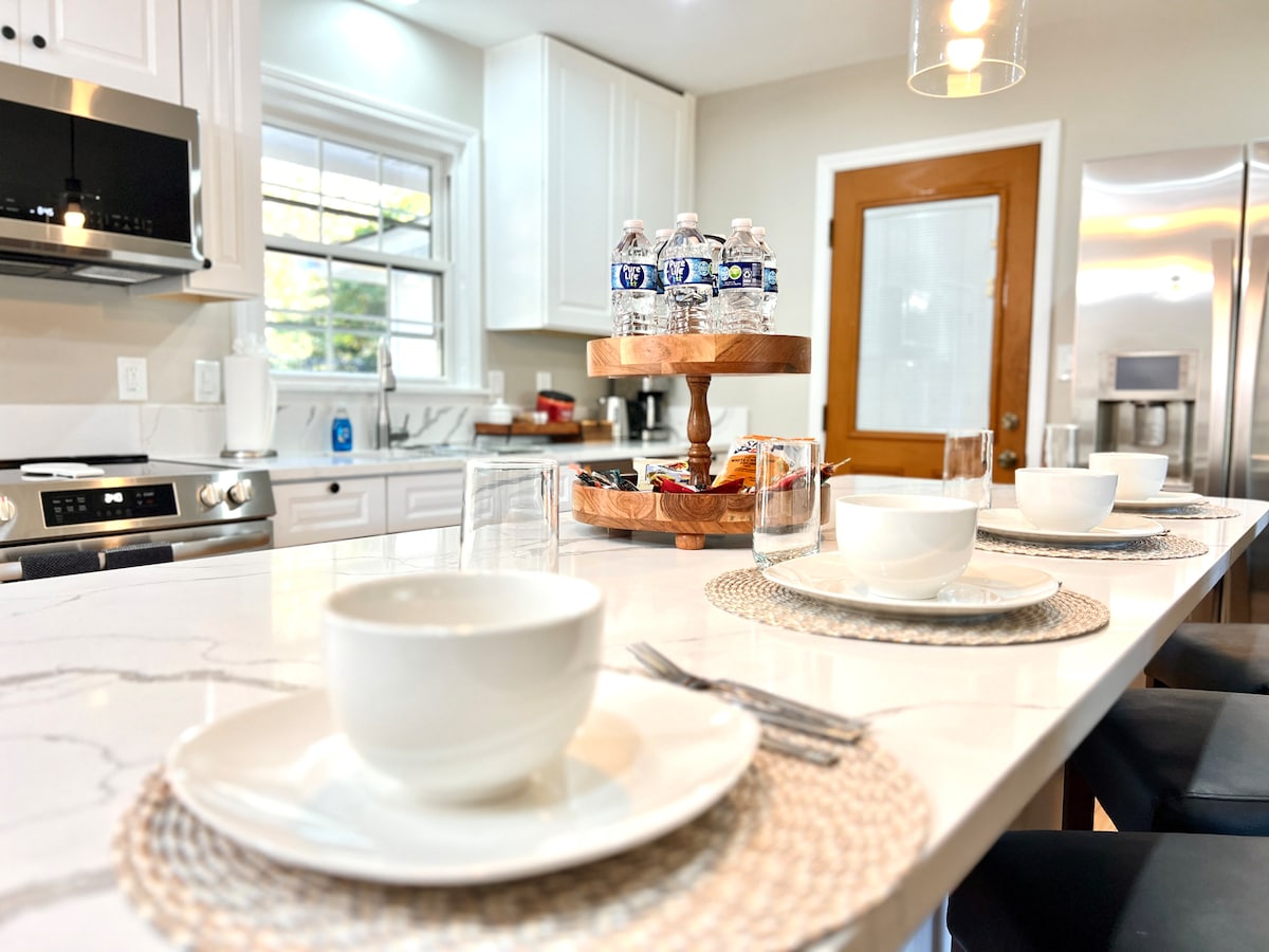 Discover Goldie House, your Atlanta getaway in Stone Mountain, Georgia. Centrally located - 20 minutes from airport and downtown. Unwind by the fireplace, entertain and host your guests in our beautiful modern kitchen with 10- foot island. Rest on Casper mattresses. Enjoy outdoor dining, roast marshmallows in firepit, relax in the private, fenced outdoor space. Stylish bedrooms with 2 king and 1 queen bed, Families with pets are welcome. Make your Atlanta visit unforgettable at Goldie House!