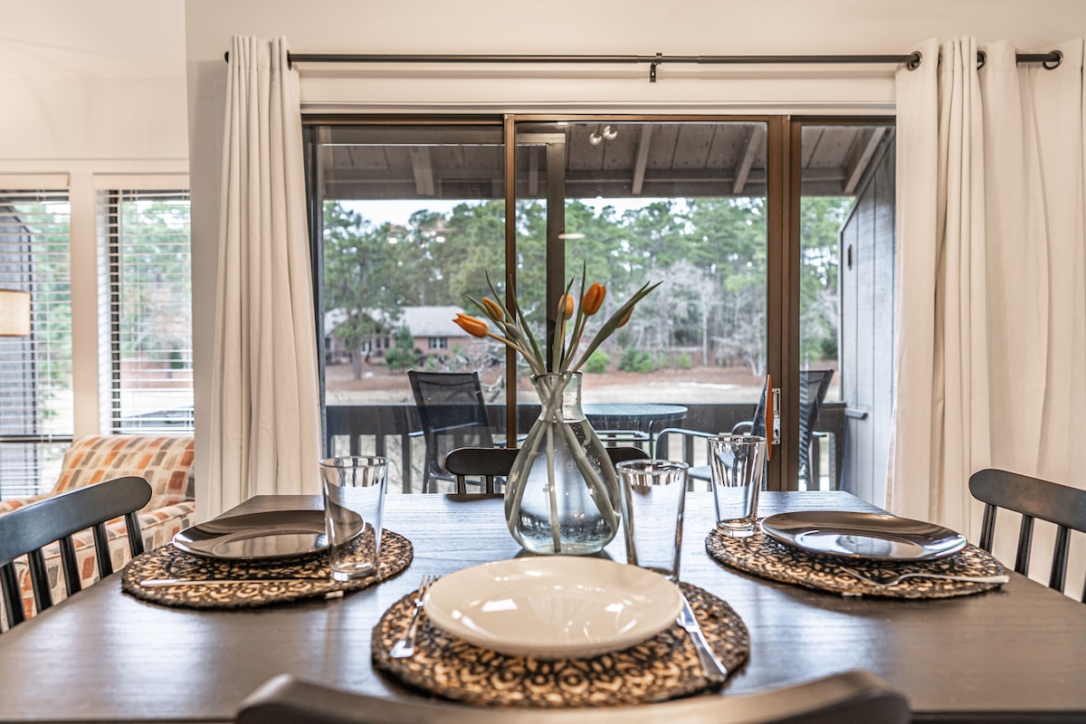 Renovated, centrally located condo in Pinehurst - only a 10 minute walk to the Pinehurst Golf Clubhouse! "Long Drive On No. 5" is a newly renovated, second-story one-bedroom condo perfectly located on hole #16 of Pinehurst No. 5 Golf Course. Relax on the private back deck with open views of the fairway and enjoy the sunshine and unparalleled peace and quiet. Cozy & luxurious finishes combined with an excellent location make this condo perfect for a weekend golf getaway or an extended stay!