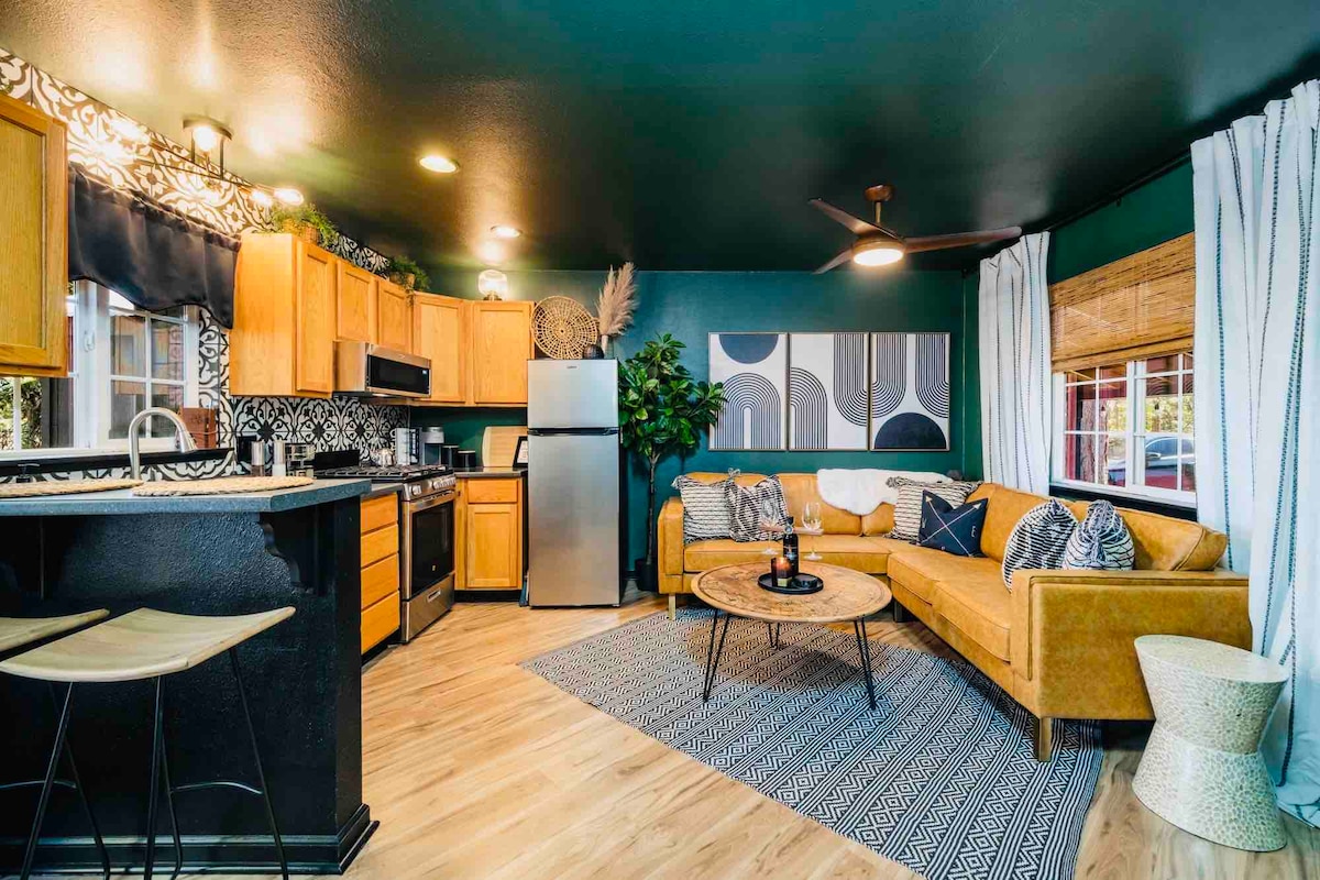 A/C, HIGH SPEED WIFI & EASY ACCESS. Compass^SOUTH is one of 4 bungalows at Compass Retreats. Tucked under the tall pines with uninterrupted views of the Mountain sunsets. This Bohemian-Inspired space is perfect for a couple, small family or solo travelers looking for a comfortable space to relax and unwind after a day of adventure. Perfect home base to explore Pinecrest Lake, Dodge Ridge Ski Resort, state parks, multiple lakes, rivers, and countless hiking trails in the area.