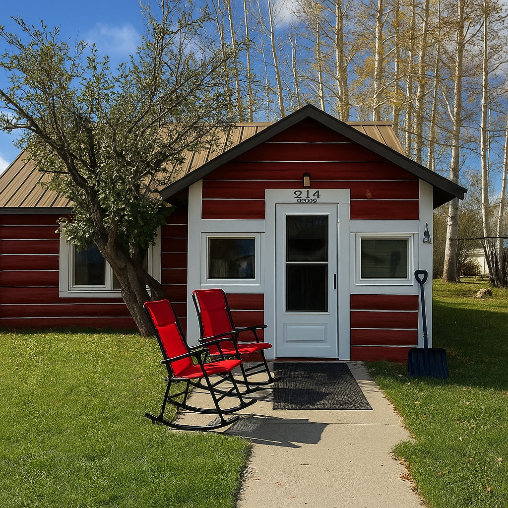 This Historic 2 bedroom 1000 sq/ft Cabin is perfect for Couples, Friends or a Family. Two queen beds in the front bedroom and a full bed in the back bedroom. The bathroom with tub/shower is accessed thru the kitchen, the kitchen has a refrigerator, range, microwave and a washer/dryer. The living room has a 2 sofas(1 foldout) and dining area. Great front porch with chairs and table and a small fenced yard. Walking distance to all amenities. Same day reservations after 7PM - please inquire first.