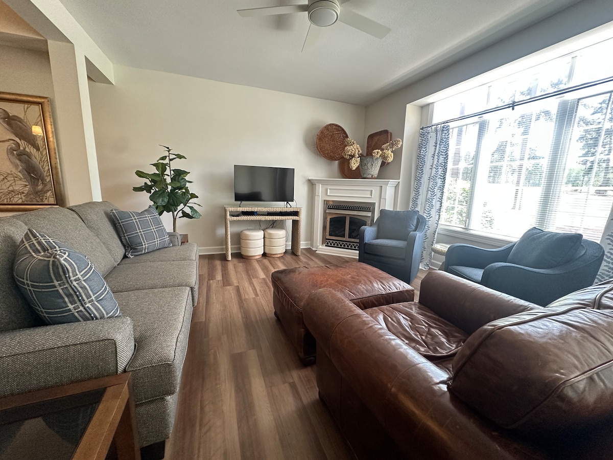 Across from the Harness Track and an easy walk to the main clubhouse at Pinehurst sits our villa on the 2nd hole of the Ellis Maples designed Pinehurst No. 5. Our newly renovated 2nd floor unit has 3 bedrooms, 2 bathrooms and and open floor plan. With seating for 8 and 5 beds, you can bring the whole family comfortably. Cook dinner in the kitchen equipped with new stainless and enjoy a glass of wine out of the cooler. This unit has two porches, and both are great for your morning coffee.