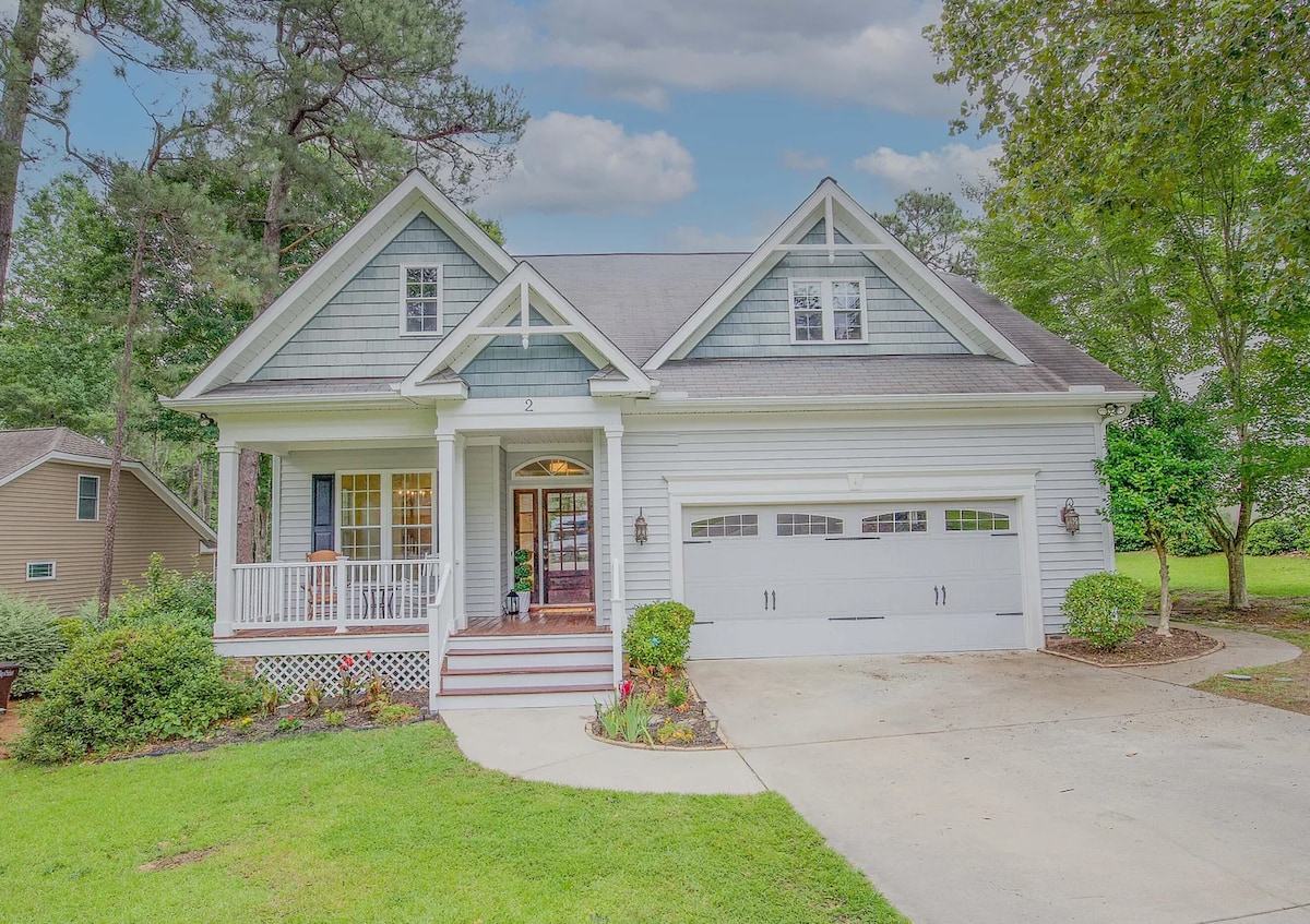 The Mulligan House is located in the middle of Golf Country. It is only a 5 minute drive to Pinehurst resort and the village of Pinehurst and 8 mins from downtown Southern Pines. You are only a hop away from all restaurants and several pubs. There are 3 breweries that are minutes from the house. You can play golf during the day, have a bite to eat, have a drink at one of the pubs then relax in the big hot tub surrounded by lights. Property is private but convenient to everything.