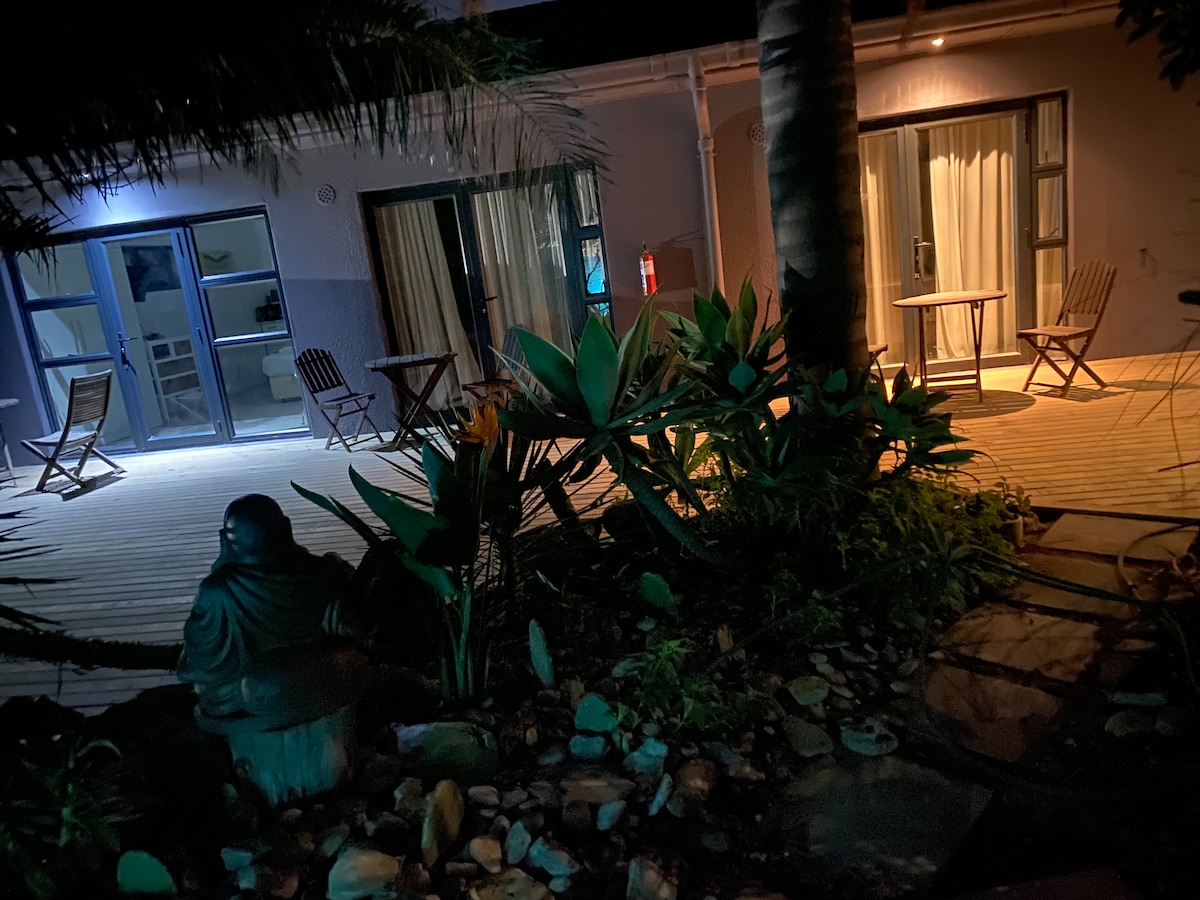Stylish Studio. Great location. Close to the beach, shops & restaurants.The studio has a king size bed (or two single) a fully equipped kitchenette, a dining area, with table & chairs, ceiling fan, wall safe & an ensuite shower room. Private patio with patio furniture, overlooking the garden with koi ponds, indigenous plants and water features. Ideal for a holiday makers, surfers or business travellers;secure parking, Wifi, large swimming pool, poolside kitchen & surfboard & kite storage area.
