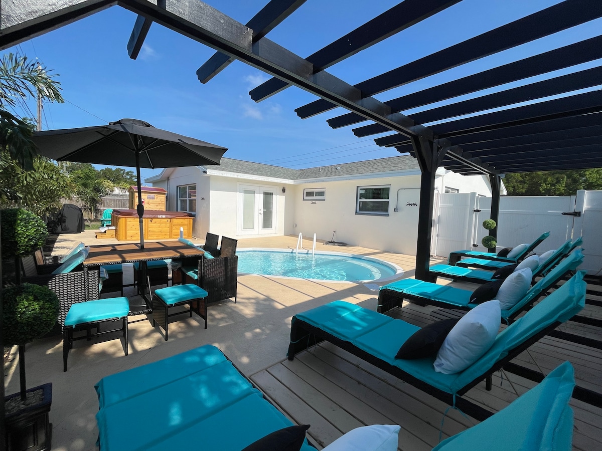 Make some special memories at this unique and family-friendly home! Your vacation home just completed a head to toe renovation. Everything ( and we mean everything ) is new! Relax and detox in the RARE 4 person SAUNA! Enjoy the HUGE 6 person HOT TUB. Soak up the rich Florida sun by the pool under the large 27 foot resort style pergola. Only 3 miles away from the closest beach 🏖️ 300 feet from the Pinellas Trail!! FASTEST WIFI AVAILABLE -668mbp Have a question?? Message me!