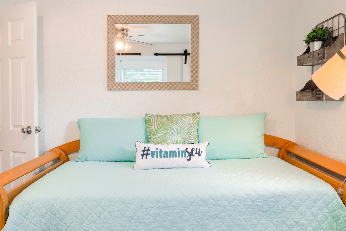 Experience modern coastal luxury in this stylish, spacious upstairs 2-bedroom cottage. Professionally designed and fully stocked. Steps from Main Street Dunedin, short stroll to stunning sunsets at the waterfront, quick drive to award winning beaches--Honeymoon Island & Clearwater Beach. Walk to restaurants, shops, & breweries. Pet-friendly w/ 2 king beds, a sleeper sectional, & lovely treetop views. Treat yourself today. Book your getaway at the Barefoot Parrot Cottages.
