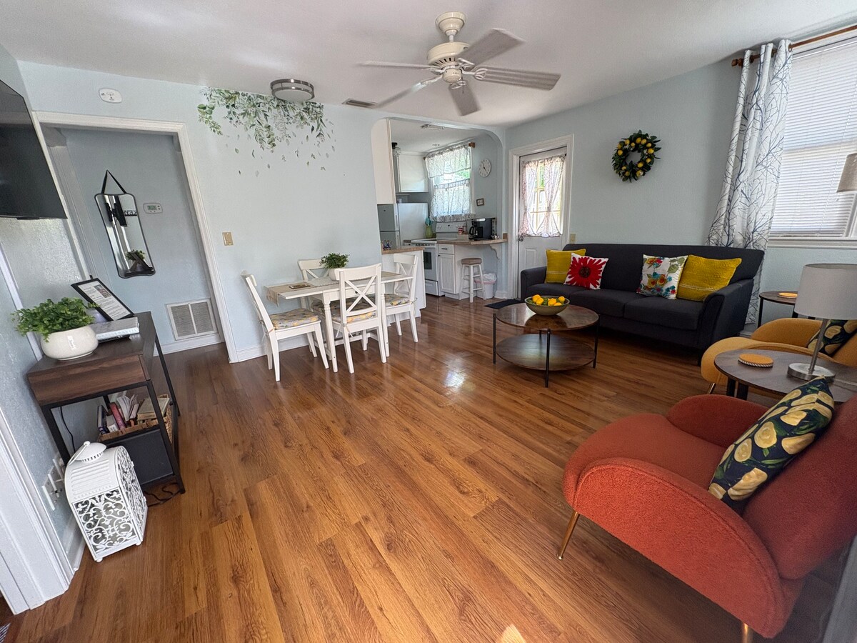 Stay in this charming 1920's cottage, where everything is just a stroll away. Walk to the local restaurants, breweries, and shops on Main St, or take a leisurely walk to the marina for sunsets. With its prime location, it is perfect for exploring the heart of Dunedin on foot. Let’s walk and discover all that this vibrant area has! Your beautifully appointed cottage is a great retreat after beach fun, baseball or biking, and is an easy stroll home after an evening enjoying the local music scene.