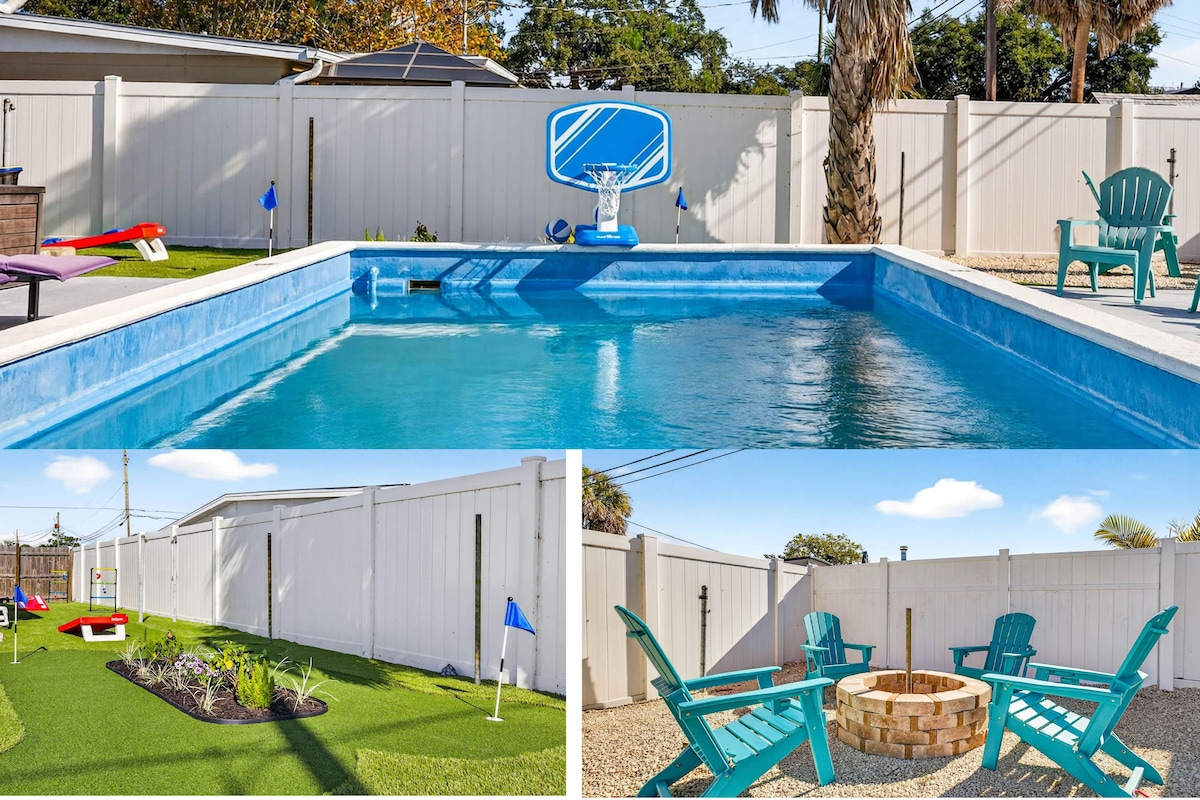 Escape to this stunning heated pool house in a private, fenced lot—your perfect Florida retreat! Stay connected with fast Wi-Fi and enjoy off-street parking. As our guest, you'll receive FREE beach gear: 4 chairs, umbrella, cooler, and a large beach blanket for easy beach days. Inside, enjoy 4 spacious bedrooms, a gazebo with TV, comfy sectional, and egg chairs. Have fun with Pac-Man and darts, or relax around the fire pit. Only 10 minutes to the beach and close to top attractions. Book today!