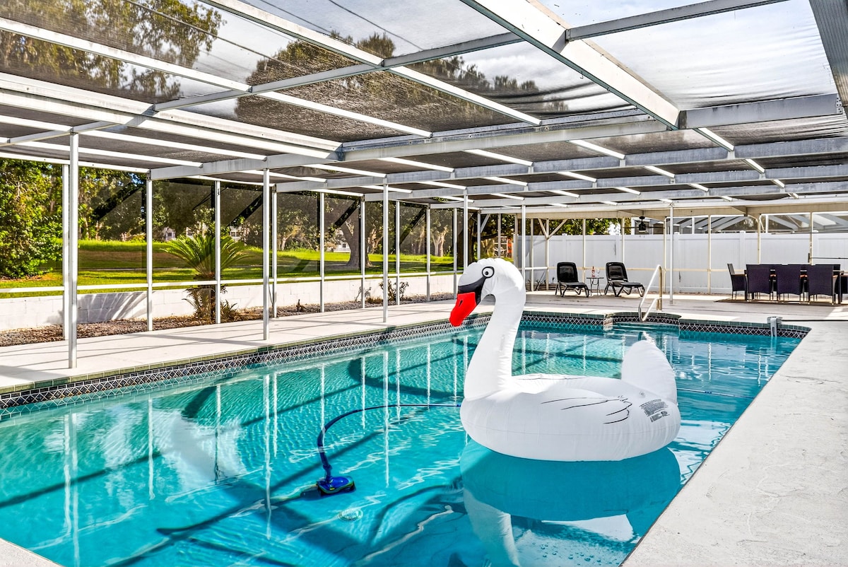 Cozy, spacious home 🏡 w/ heated swimming 🏊♀️ pool, next to a golf ⛳️ course. Close to the famous beaches ⛱️, St.Pete and Tampa. This cozy open home has a large living room, big kitchen and pool deck patio. All 3 bedrooms have large TV's w/ Sling & Roku. The big back patio has a swimming 🏊♀️ pool, TV, fridge and BBQ for cook outs & R&R. Located in a quiet family-friendly neighborhood. Location! 15 min - Clearwater Beach, Dunedin, Safety Harbor 30 min from - St.Pete, TPA Airport, Tampa