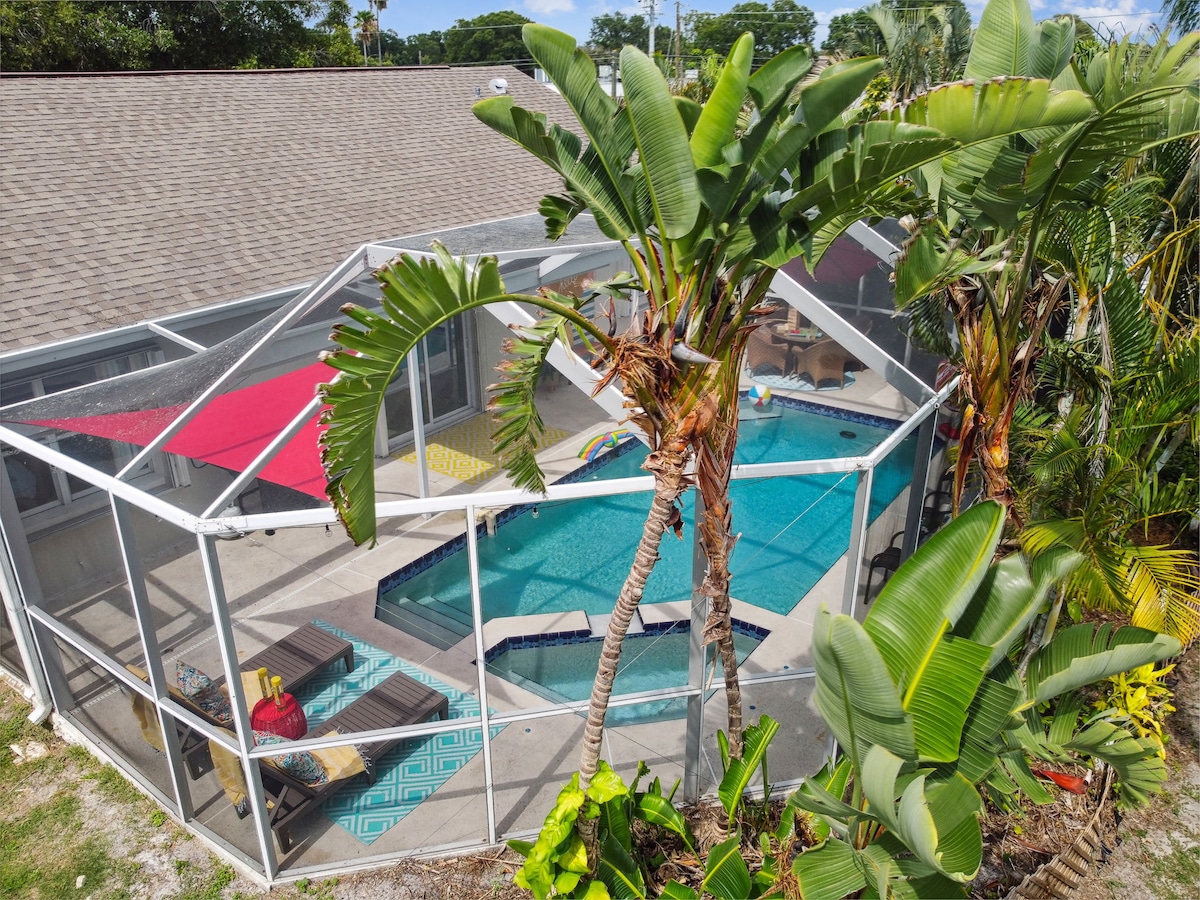 Welcome to The Merry Mint! A family & pet friendly 2/1 oasis located 4mi from the #1 beach in America; Clearwater This colorful & whimsical property is just minutes from grocery, 5 star restaurants, & every convenience. Only a short drive to the beach! Or stay in & enjoy: ★ 24x12 Pool w/LED multicolor pool light ★ 34X18 Pool Deck ★ Loungers ★ 16x20 Grill Deck ★ Fire-Pit w/grill grate ★ Yard Games (regulation corn hole, jenga, connect four, etc) ★ BBQ Grill ★ string lights