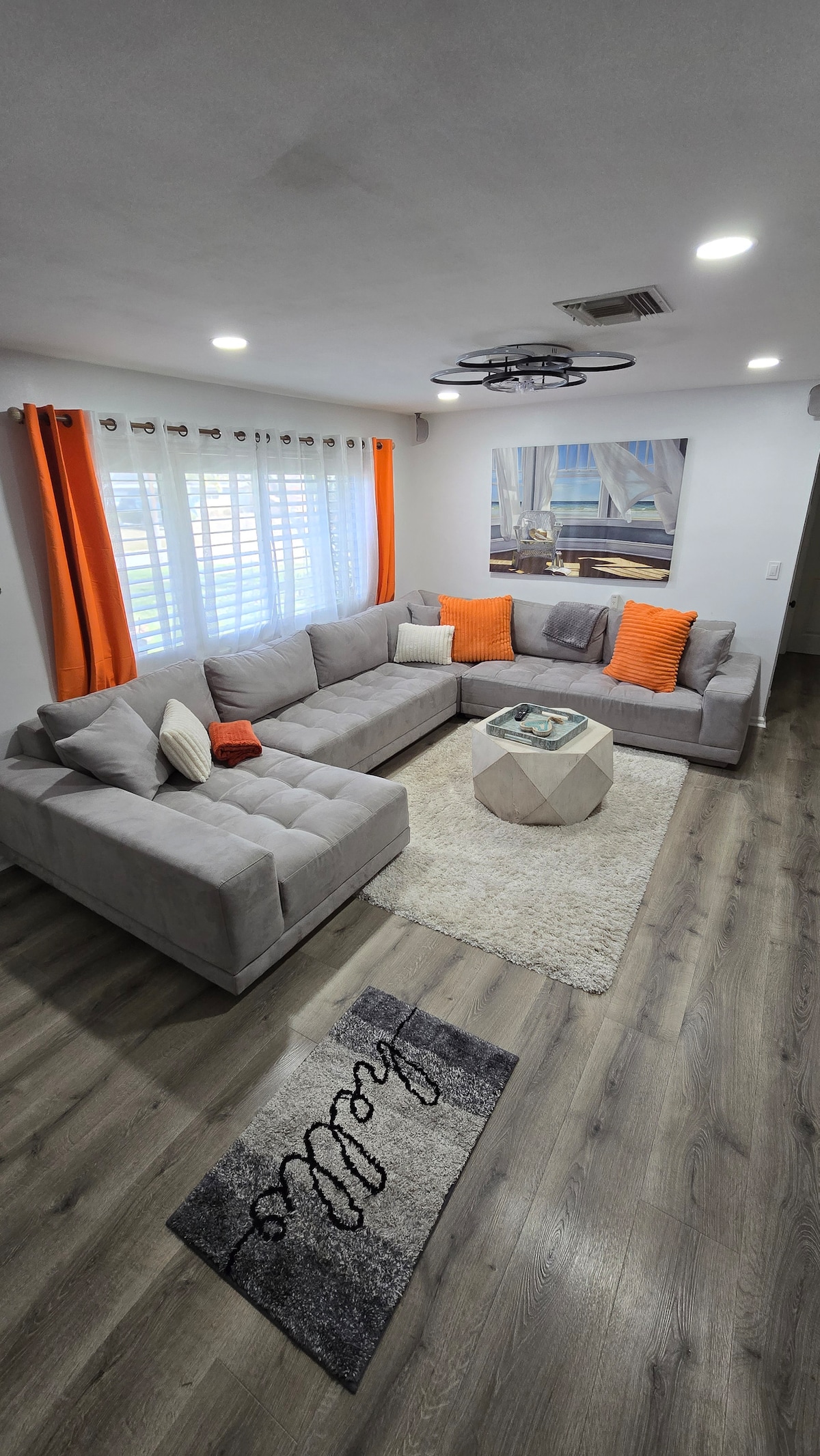 Top 1% Airbnb Home — Highly Rated & Trusted Enjoy your getaway in our elegant home with a LARGE FREE HEATED POOL, poolside seating, dining and tanning areas, and LED lighting options. Relax with BBQs, a hammock, firepit, outdoor games, and a fully fenced backyard — PERFECT FOR FAMILIES AND PETS! Quiet cul-de-sac, just 5 minutes from beaches. The gorgeous home offers 3 spacious bedrooms, 2 upscaled bathrooms, a fully stocked kitchen, a designated work area, and 85-inch TV in the living room!