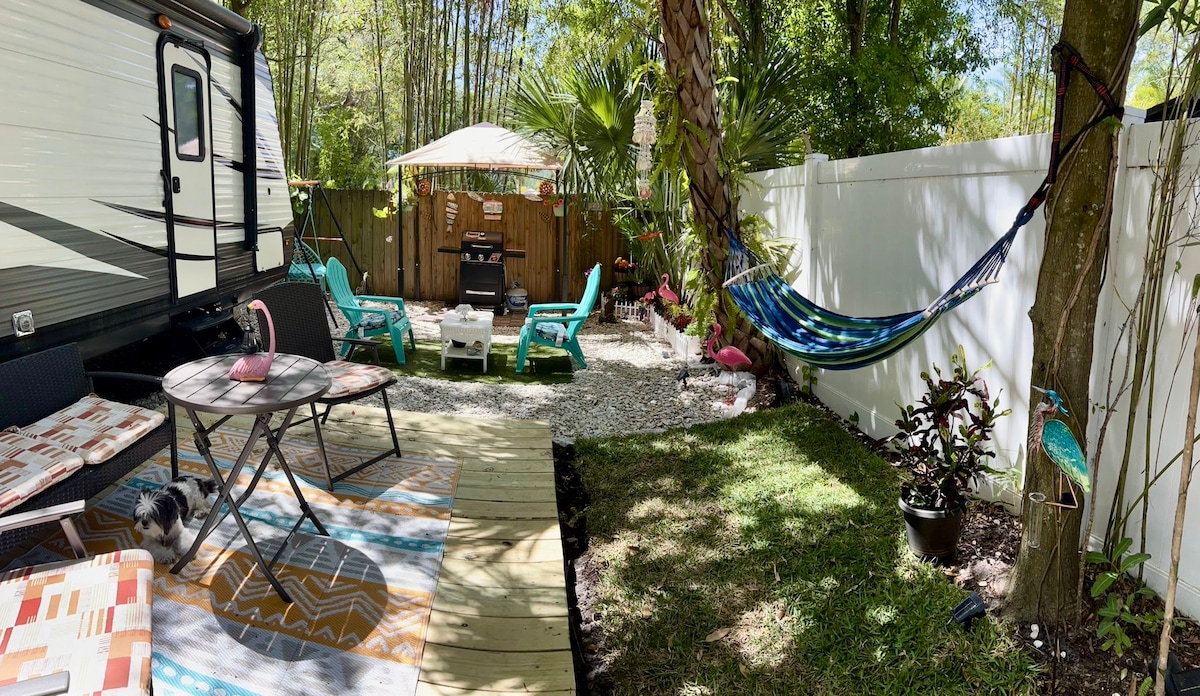 Come enjoy our cozy farmhouse RV. This Unit is located in our backyard. The backyard is a fenced in area with a seating area and small charcoal grill where you can sit and enjoy the Florida weather. Please note, this unit is best suited for 1-3 guests. Yes, the unit is capable of sleeping a third guest if it’s a child. Other things to note No smoking inside the unit. There is a seating area with an ashtray outdoors where smoking is allowed.