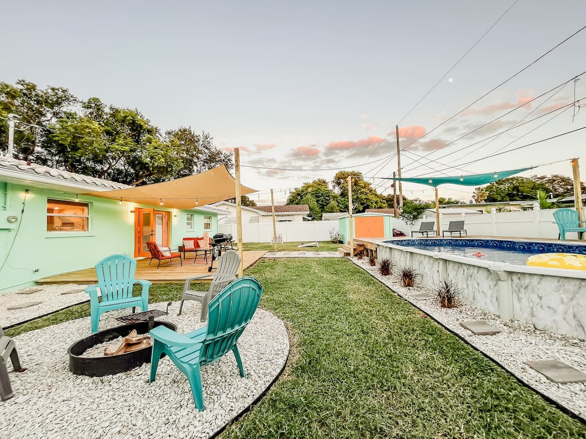 Fun, Funky, Pool, Fire Pit! 4 miles to Beach