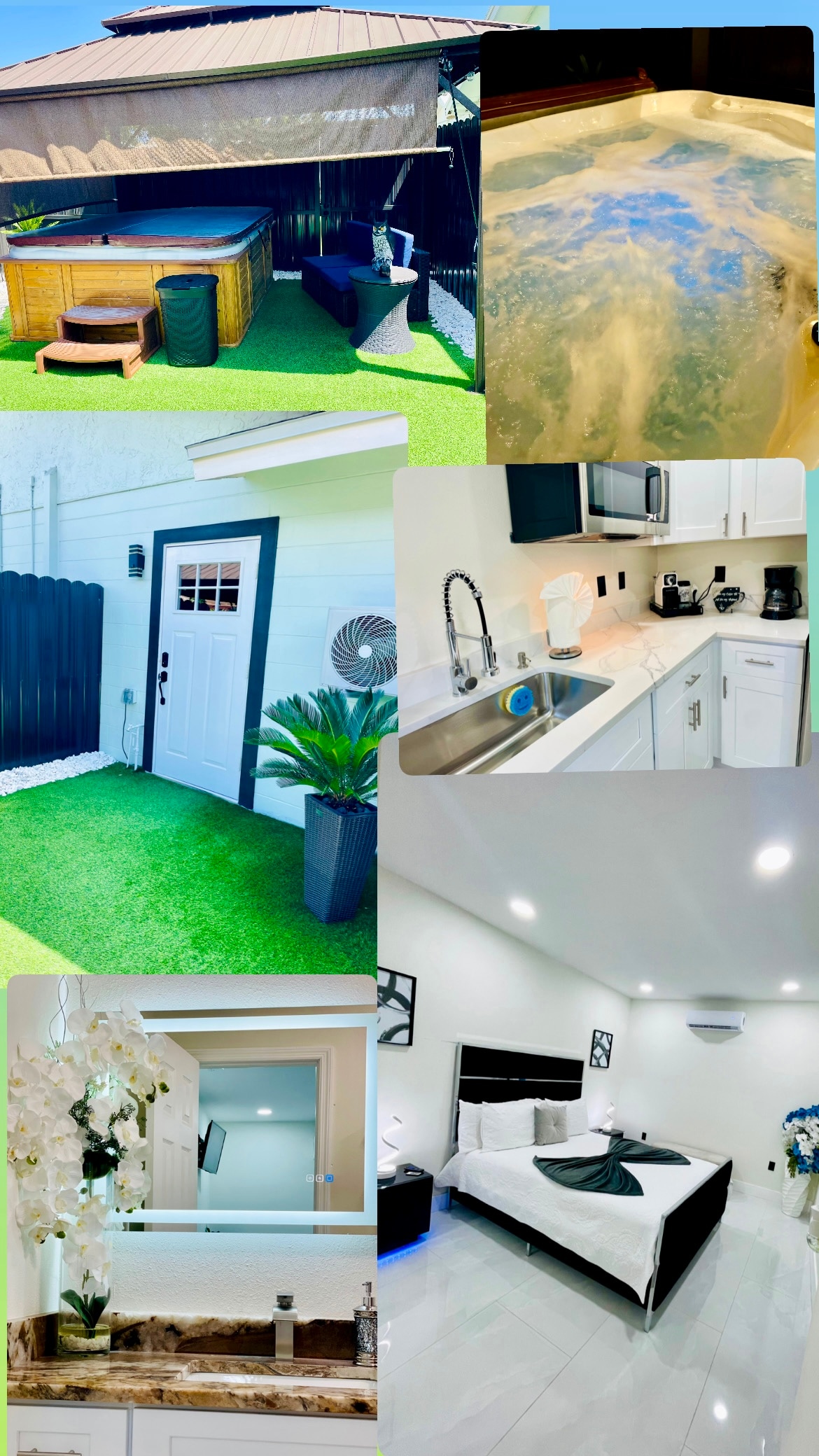 This cozy, fully private apartment attached to the house is perfect for a romantic and relaxing getaway. It features a private entrance, a fenced outdoor area with artificial grass, a projector, and a jacuzzi. Located just 10 minutes from Saint Petersburg International Airport and Clearwater Mall, and 15 minutes from Florida's most beautiful beaches. Ideal for enjoying moments of passion or tranquility, this space is the perfect retreat for couples.