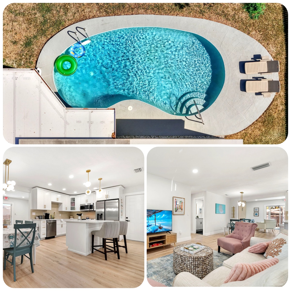 💥Book a week -> 10% off your entire stay!💥 🌟 Heated pool included in your stay! 🌟 🏡 This home is a 3 bed. and 2 full bath., newly renovated home. It's modern look with amazing amenities and spacious 1500sqft of living space, makes it easy to have an enjoyable vacation near the best beaches of Florida. The backyard is fully fenced with a pool that is also heated during winter months. This home is great for solo adventurers, couples, and families, especially families with young children.