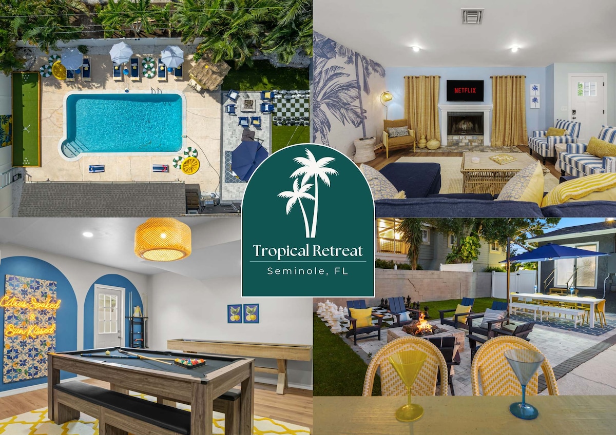 Relax in this spacious 4BR pool home near Florida’s sandy beaches & Lake Seminole Park! Safe and Ready! Enjoy a private fenced yard and pool, tropical landscaping, and plenty of space for family, work, or play. Just minutes to golf, tennis, dining & top attractions. Perfect for vacations, snowbirds, or remote work with 2 desks, a stocked kitchen & fun extras like bikes, beach gear & fitness space. Ask about special promotions then book your tropical retreat today!
