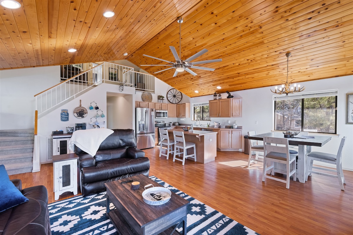 A Pinetop paradise perfect for your family and friends to enjoy! Nestled in the towering ponderosa pines near the Pinetop Country Club, we invite you to enjoy over 1,500 square feet of living space that sleeps 12 of your closest friends and family. Whether you are enjoying the brand new gourmet kitchen, the crackling fire, or the multiple outdoor decks, we hope our cabin is a cozy home-base for you and your family to create lasting memories! Follow us on IG @aframeinthepines