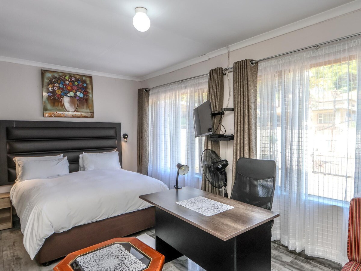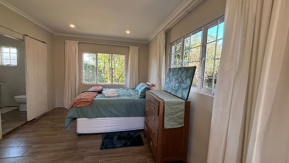 Comfortable, garden-facing room with separate entrance adjacent to the main house. Sleeps 2 guests comfortably in a queen-size bed. Accommodation includes an ensuite bathroom, coffee/tea station, fridge, microwave, airfryer, free WiFi and secure parking. Peaceful and quiet neighbourhood with easy access to shopping, main routes, nearby parks and short drive to Hillcrest Hospital and other medical facilities.