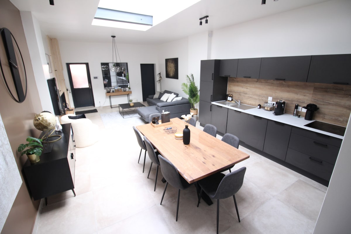 ✨ L’Élégante Escapade – Grand Loft 120 m² avec terrasse privée, proche du Lac du Der. Séjournez à Wassy, dans un loft spacieux et moderne pouvant accueillir jusqu’à 8 personnes. Profitez d’un emplacement idéal : 🚤 à 20 min du Lac du Der et ses activités nautiques, 🎢 à 45 min de Nigloland, 🍇 sur la route du Champagne et des églises à pans de bois, 📍à seulement 2h30 de Paris, 1h30 de Reims et 1h10 de Troyes. C’est le lieu parfait pour un séjour en famille, entre amis ou pour le travail.