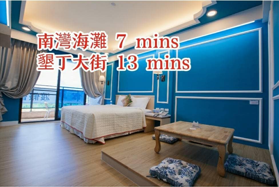 本民宿是在墾丁,距離墾丁大街只要徒步3分鐘,盡情享受墾丁夜市的美食。可安排接送服務,若要訂房請先咨詢有無空房. 住宿租電動機車可優惠100元台幣。We locate in Kenting, it only take 3 mins to walk to Kenting road. You can enjoy our local and traditional food there. We provide shuttle service.