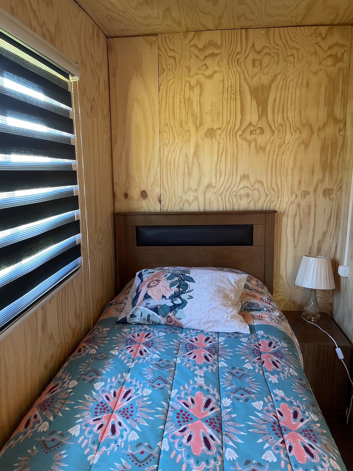 Relájate en esta escapada única y tranquila. Alpinas de la costa de 1 a 3 personas, a 5 minutos de la playa caminando a una pequeña loma, vista espectacular Terraza privada,con lo necesario para estar cómodos,silla colgante, parrilla,con vista a la bahia de Concepción,Cocholgue, Isla quiriquina. Cabaña equipada,wiffi, cocina,frigobar, horno eléctrico,loza,hervidor. Cuenta con habitación con cama de 2 plazas,smart tv,calefacción,dofá cama. Baño ducha agua caliente,secador de pelo. Opción de tina