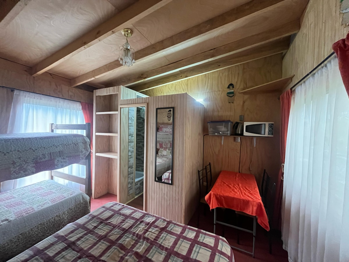 Lugar tranquilo acogedor excelente vista y privacidad, la llegada es a 60 metros de la calle donde hay que bajar un camino de cemento con pasamanos y algunos peldaños al final llegas a la playa, no apto para personas que le afecten estas condiciones cómo personas que les afecte el caminar a desnivel y los niños ya que tiene terrazas y se podrían caer. La cabaña no tiene estacionamiento.
