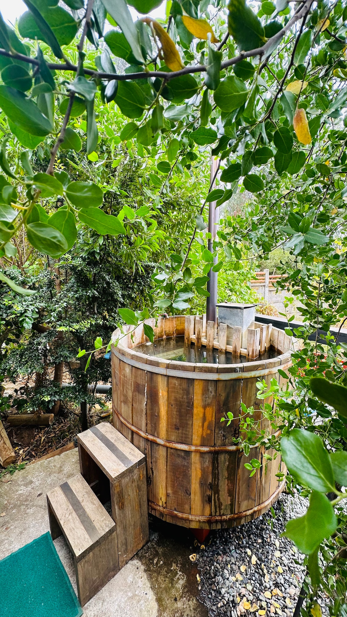 Cabaña con tinaja privada (incluida en el valor) para 5 personas (no incluye toallas). Cabaña full equipada con livin comedor, cocina, baño con calefont, tv, 1 cama de 2 plazas, 1 litera y una camada de 1 plaza. Habitación principal con salida a terraza de tinaja. WiFi starlink estacionamiento privado con techo. Check in 14:00 HRS Check out 12:00 HRS Ubicación a 5 min de rios, a 20 min de Tome y sus playas y a 40 min de Dichato