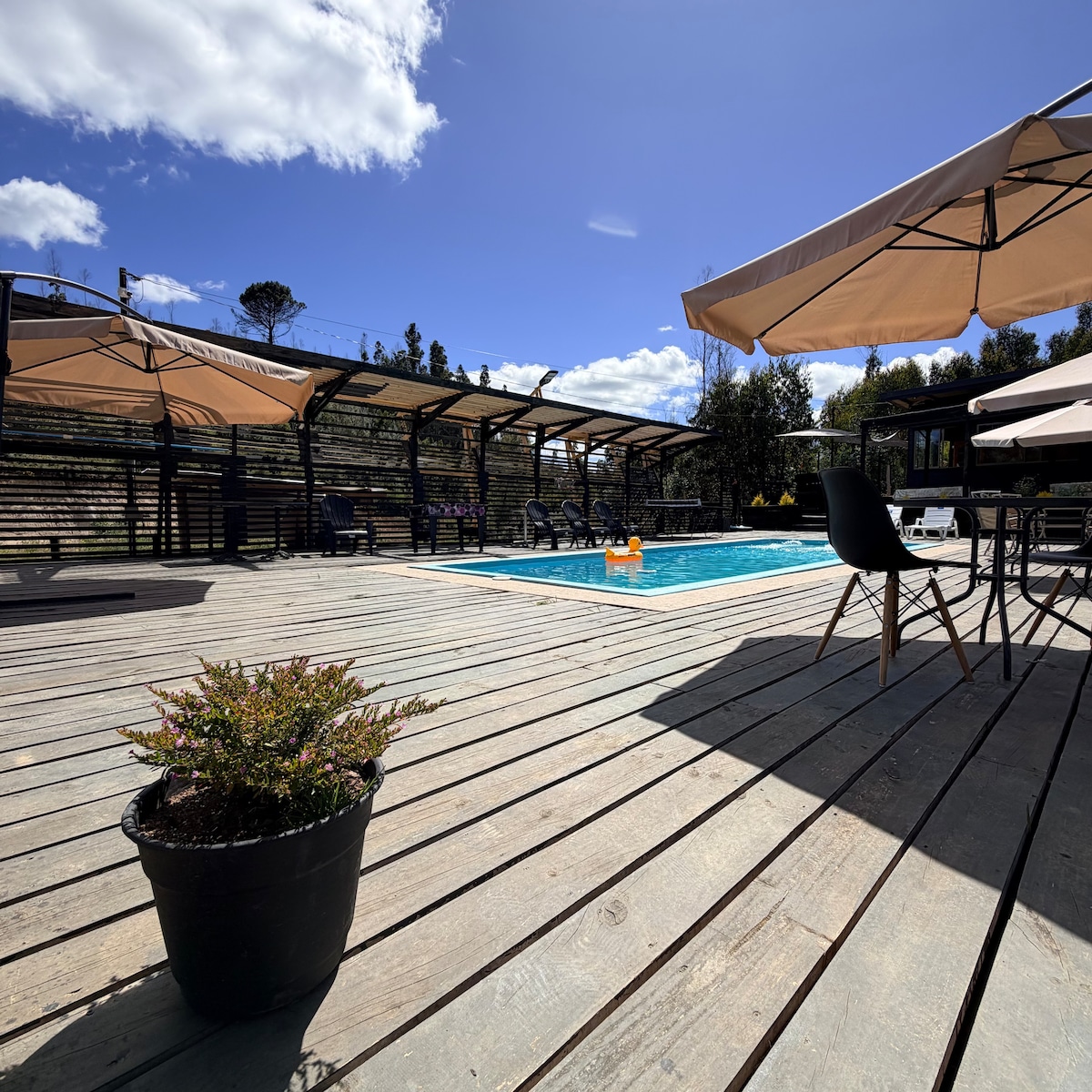 *Lo único que no se deja son toallas* Hermosa cabaña mediterránea ubicada en sector Puente 7, a 25 min de Concepción. La cabaña cuenta con tinaja de uso libre y privada como también con piscina de uso compartida.