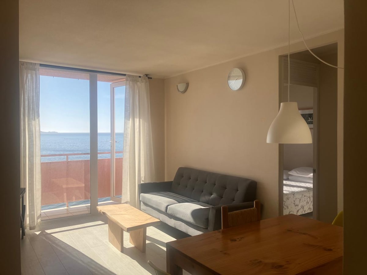 Despierta con el sonido del mar en este hermoso departamento recién reformado frente a la playa Bellavista. Ideal para desconectar en pareja con amplios panoramas para todos los gustos. Ambas piezas principales junto con el balcón cuentan con vista a la hermosa playa Bellavista y con estacionamiento subterráneo propio (hasta 2.20m de altura)